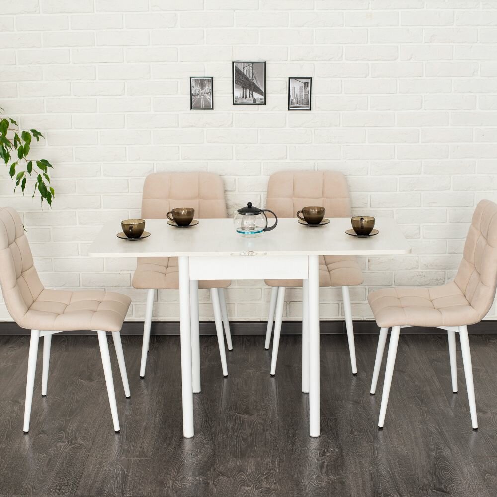 Купить Стол обеденный, кухонный, раскладной, 60х60 (120)х75 см, Бетон белый