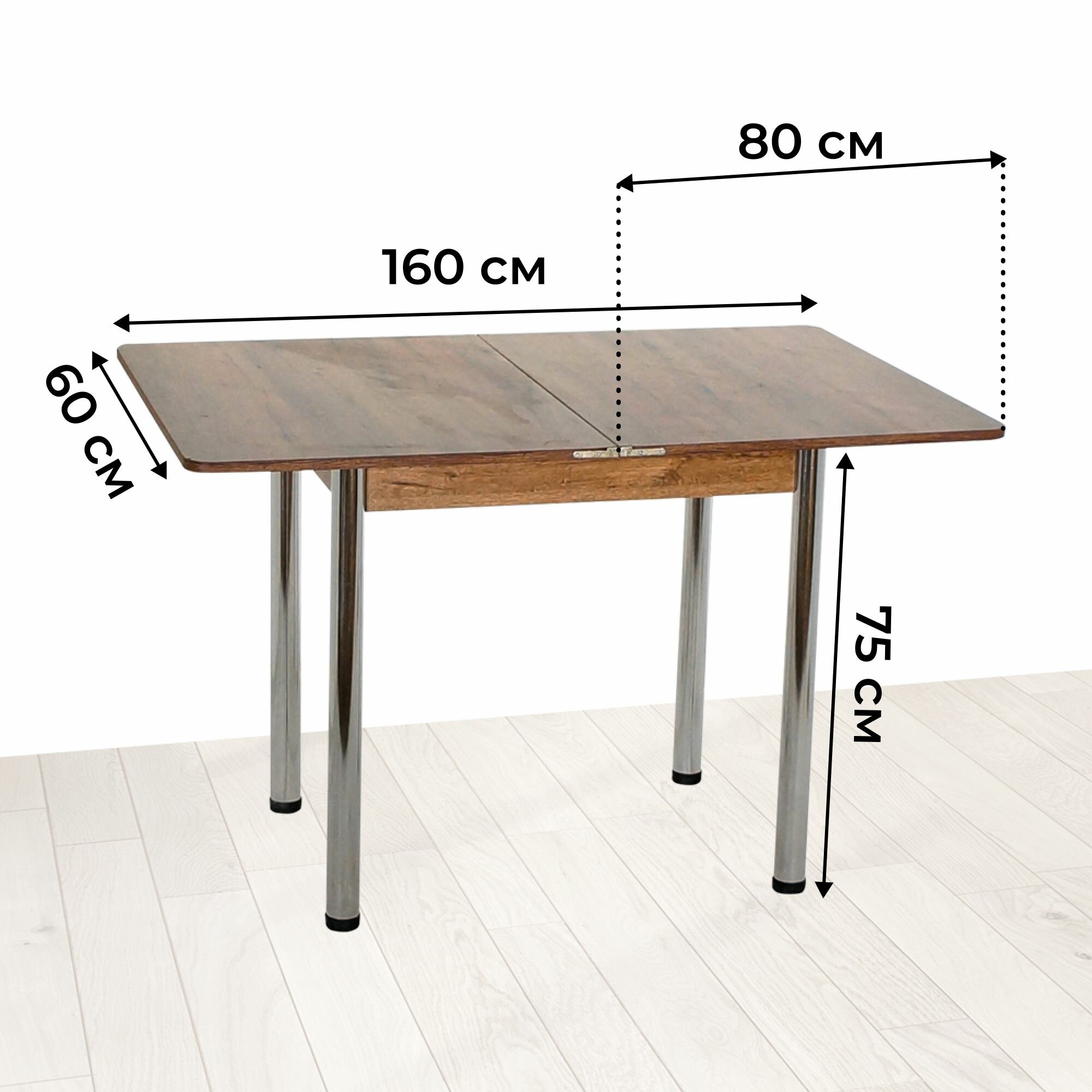 Стол обеденный, кухонный, раскладной, 80х60 (120)х75 см, Дуб Веллингтон