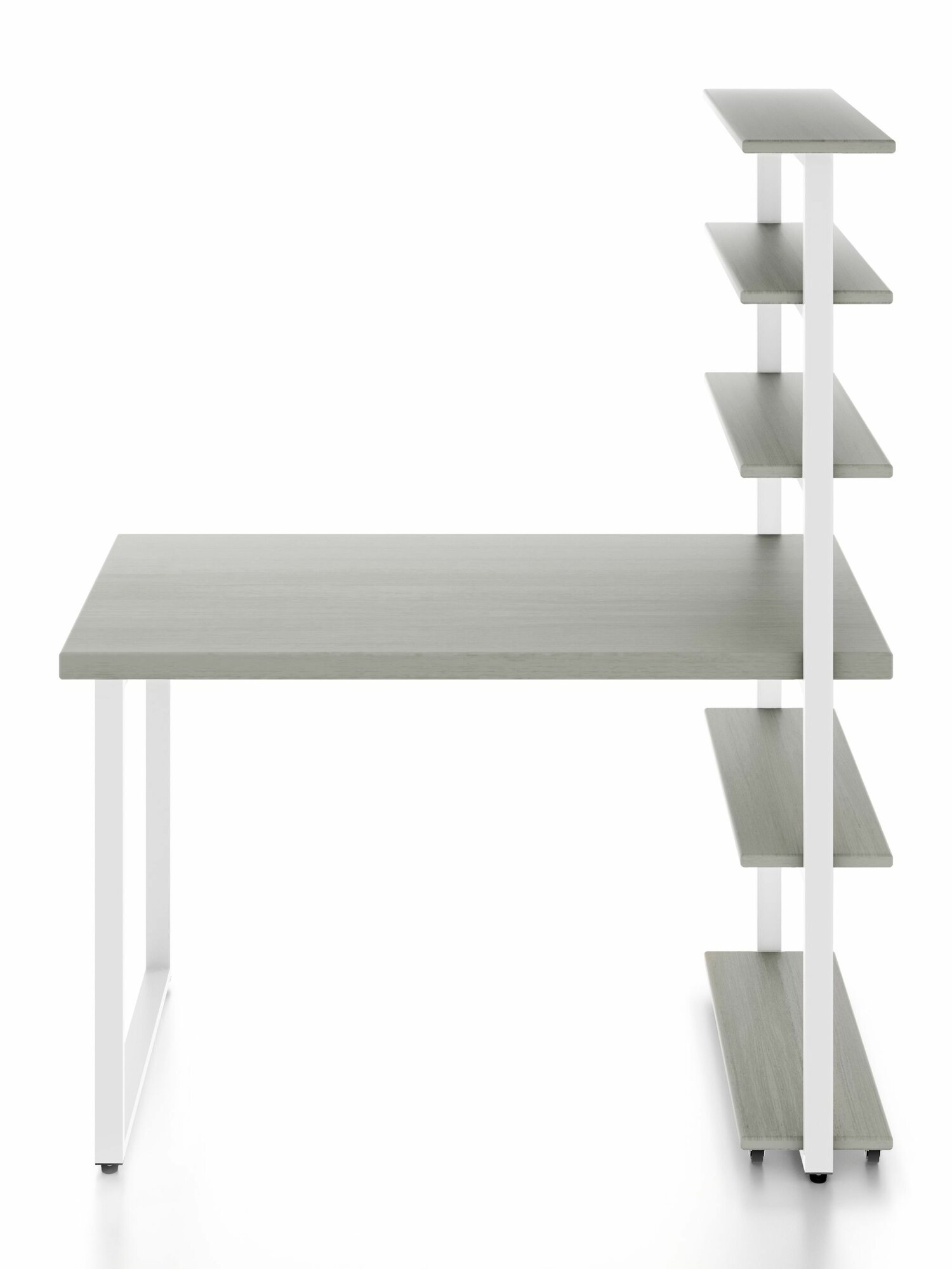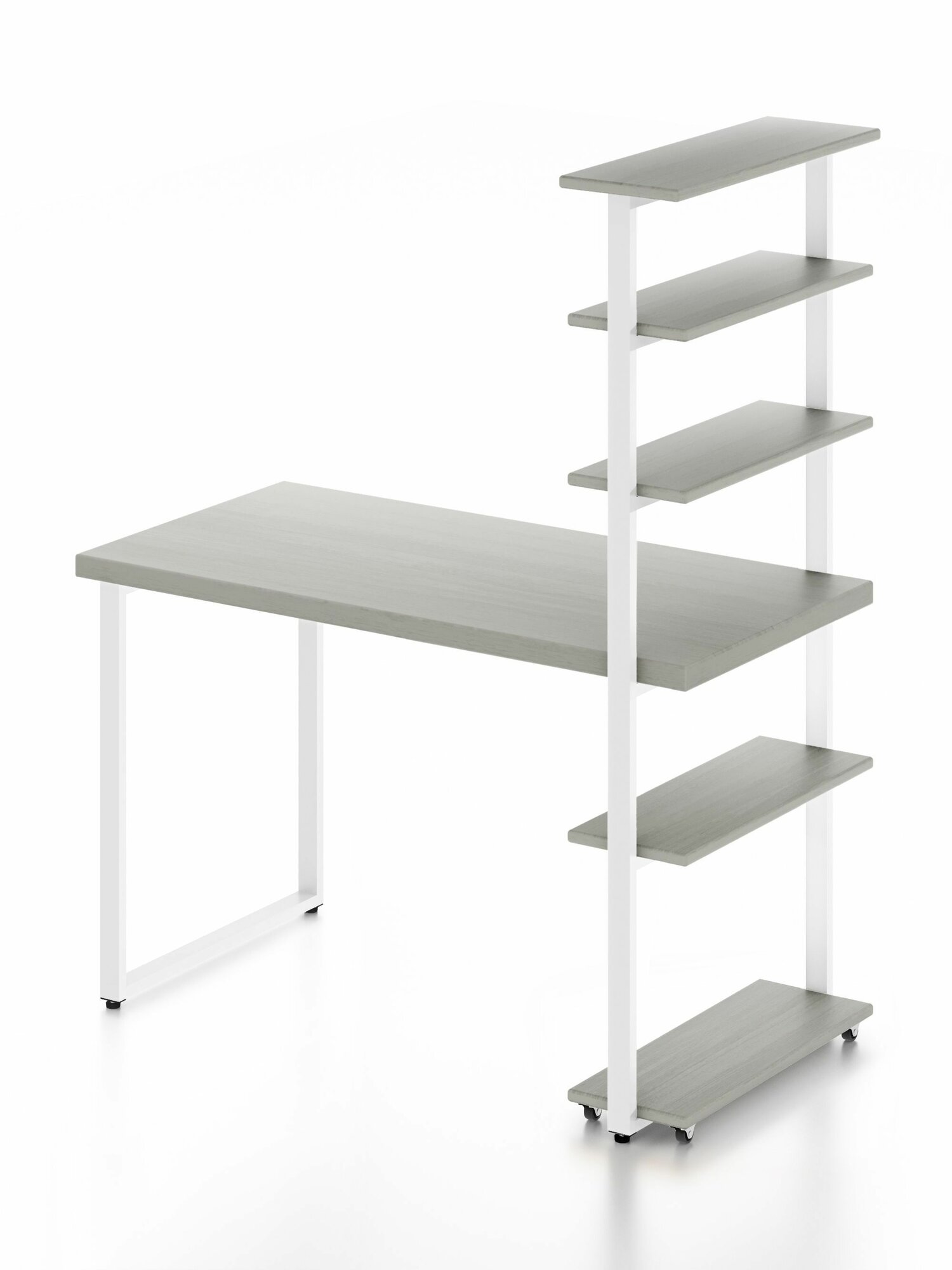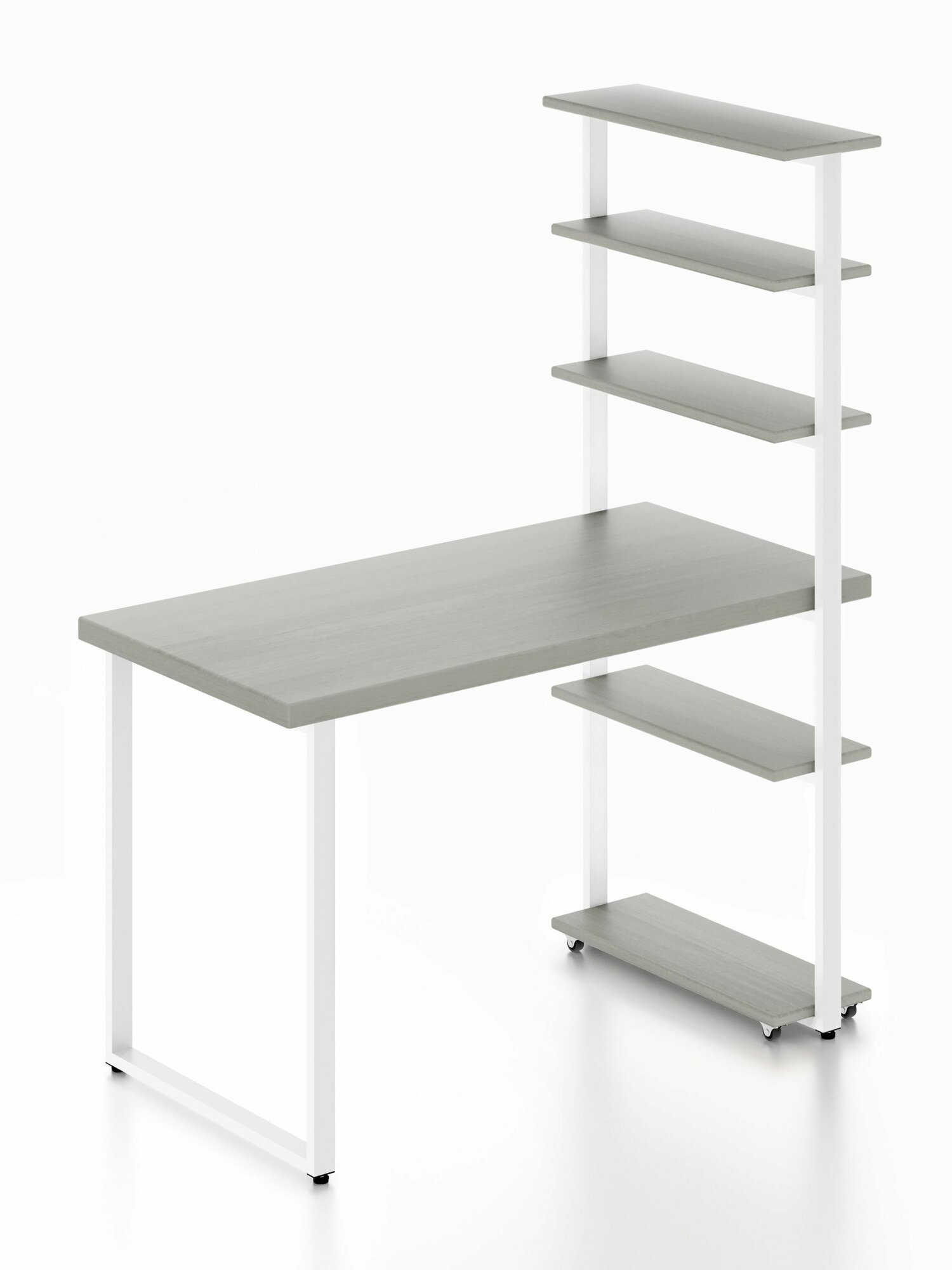 Стол компьютерный Loft с пятью полками, столешница цвета платины из массива сосны 40 мм и белые металлические ножки, 100х80х148 см