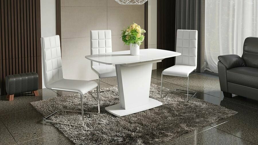 Стол кухонный обеденный раздвижной Белый/Матовый Чёрный Графит, Гарда, 110х75х75 см