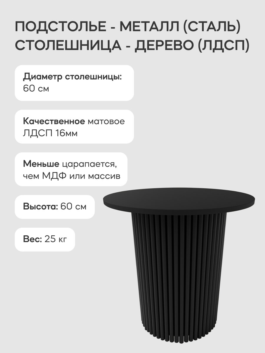 GEN GROUP Стол круглый журнальный TRUBIS Wood D120 см, черный, с металлическим подстольем