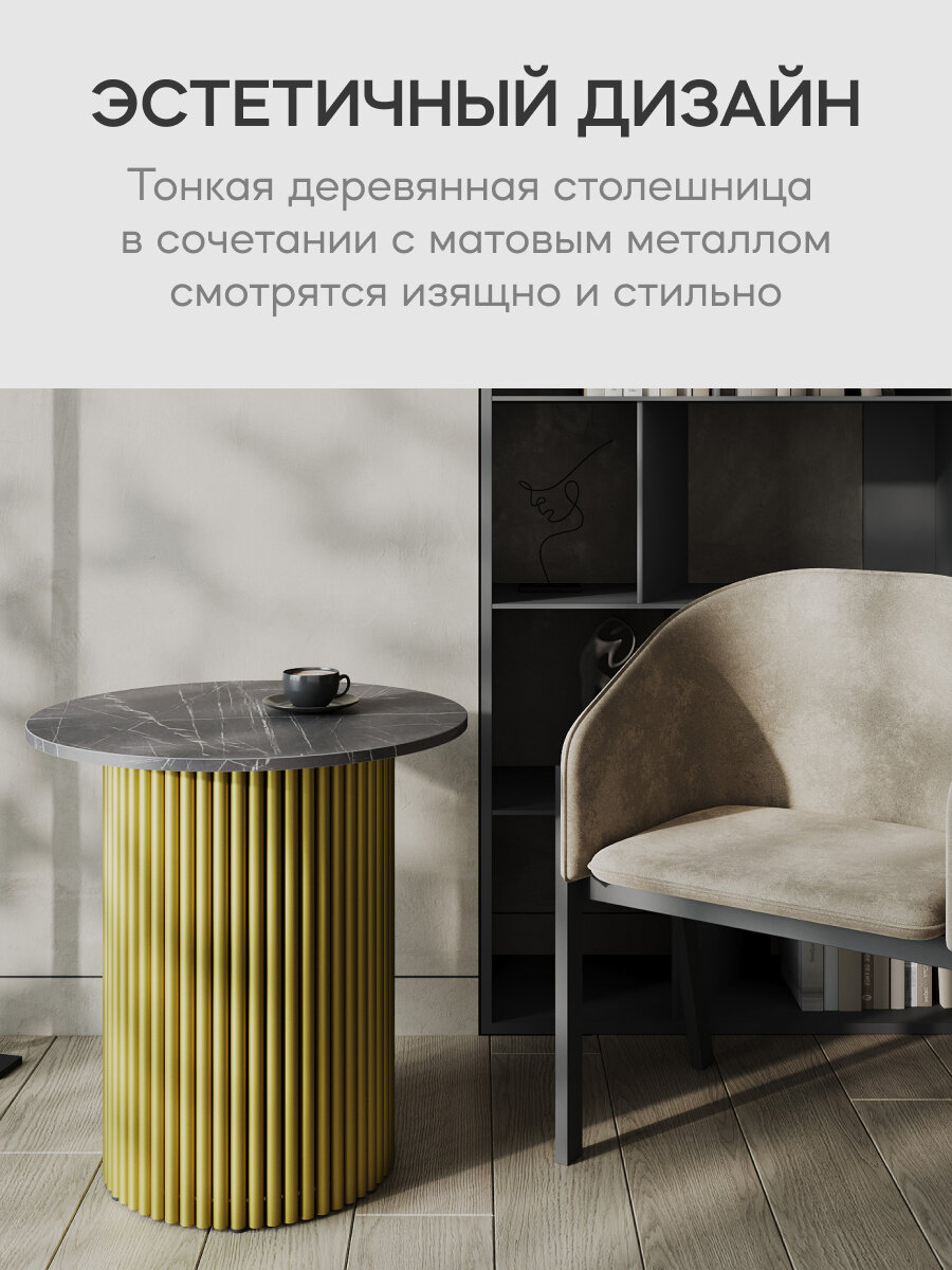 GEN GROUP Стол круглый журнальный TRUBIS Wood D120 см, черный мрамор с золотым металлическим подстольем