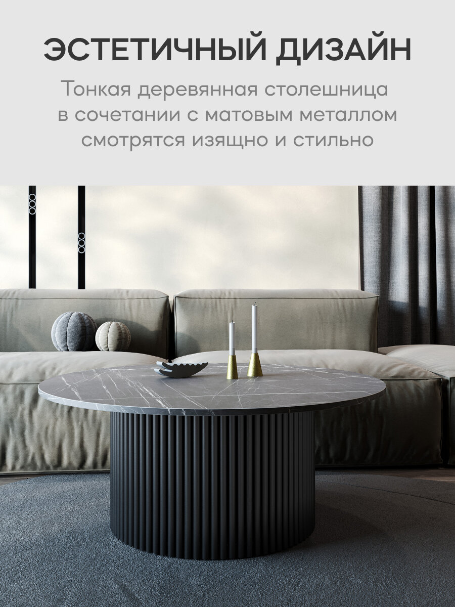 СохранитьGEN GROUP Стол журнальный круглый TRUBIS Wood M D100 черный мрамор с черным металлическим подстольем интересное: