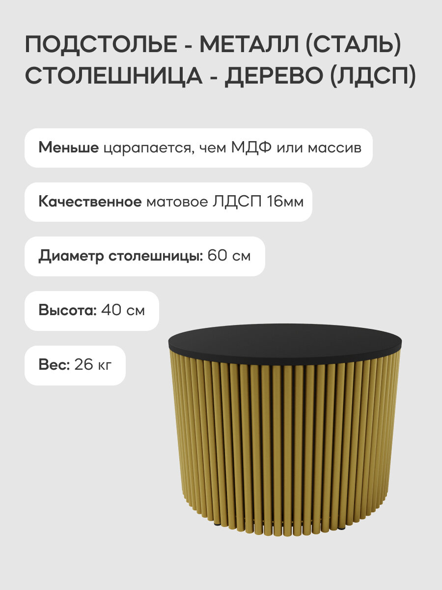 GEN GROUP Столик журнальный круглый TRUBIS Wood S D40 черный с золотым подстольем