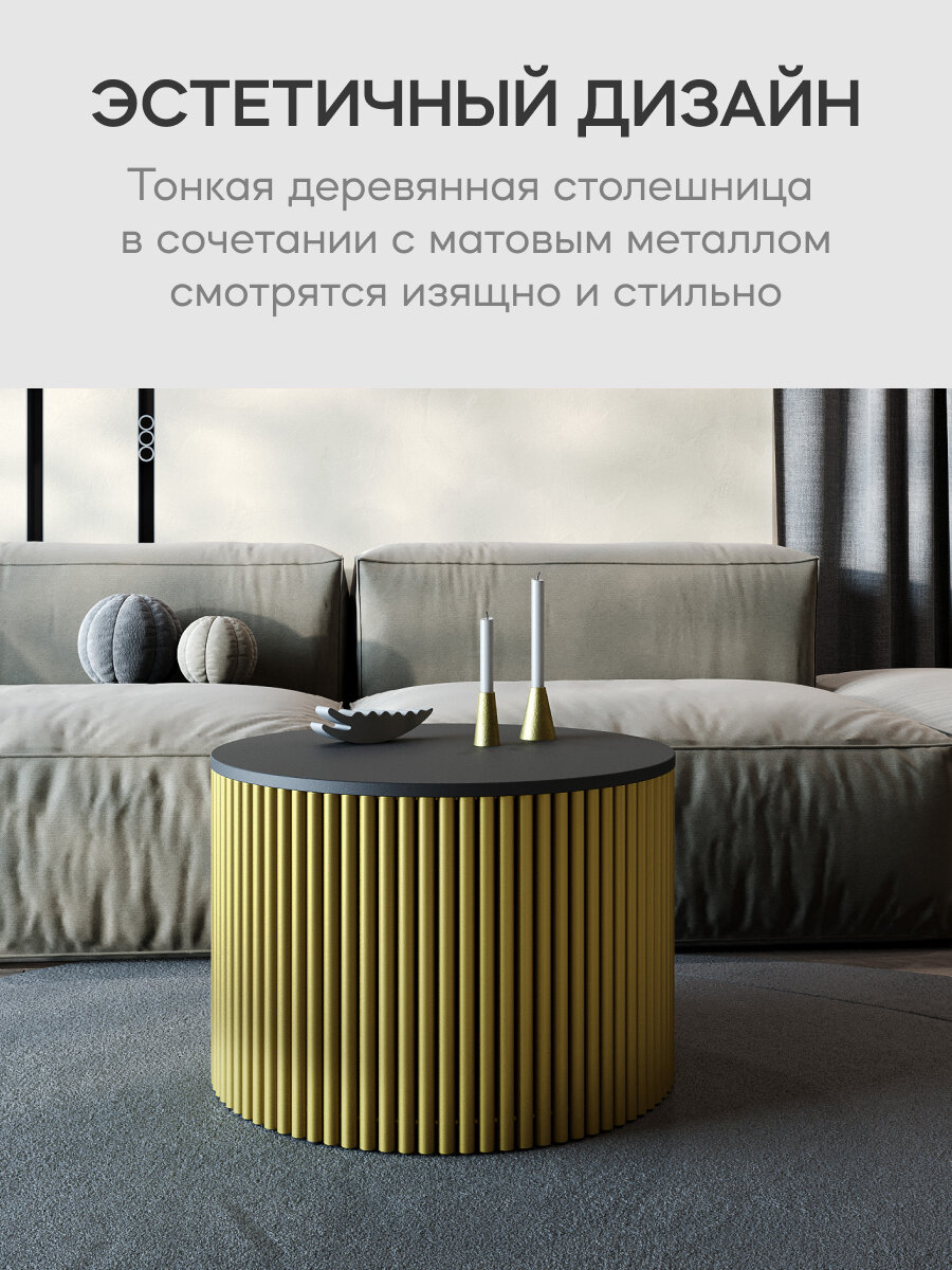GEN GROUP Стол круглый журнальный TRUBIS Wood D120 см, черный, золотое металлическое подстолье