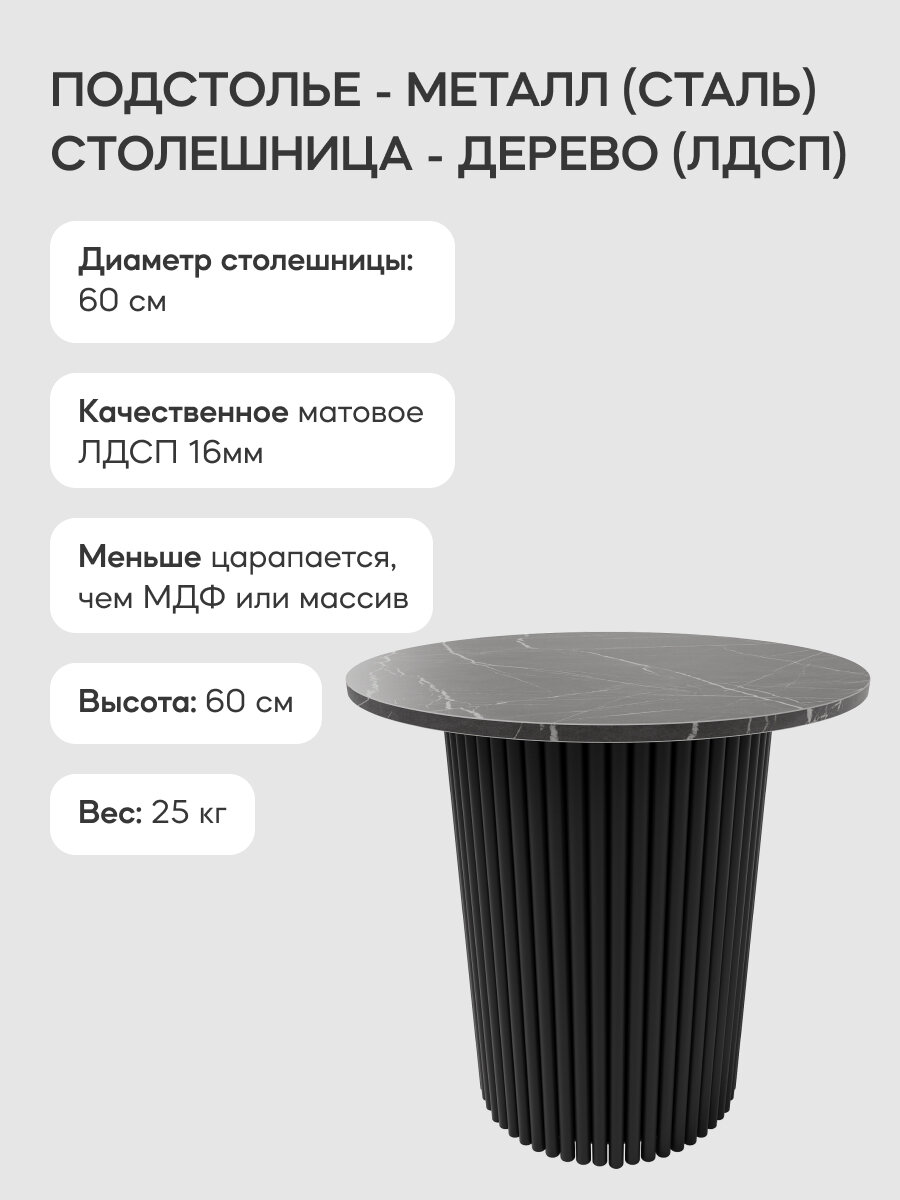 GEN GROUP Журнальный столик TRUBIS Wood M D80 черный мрамор с черным металлическим подстольем