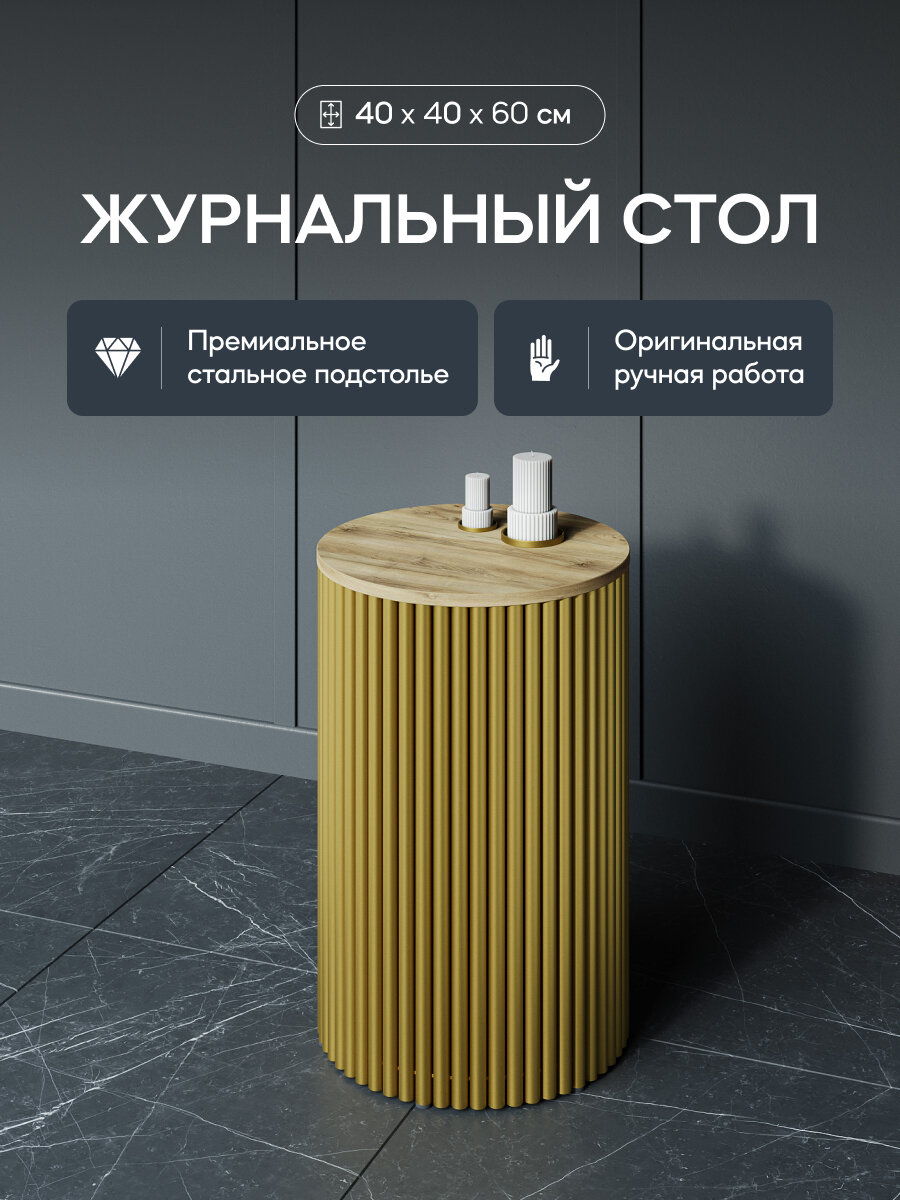 GEN GROUP Журнальный стол круглый TRUBIS Wood M D60 металлический коричневый с золотым подстольем