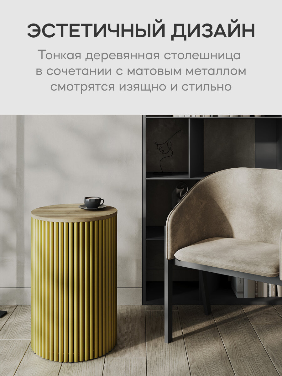 GEN GROUP Столик журнальный круглый TRUBIS Wood S D40 черный с золотым подстольем