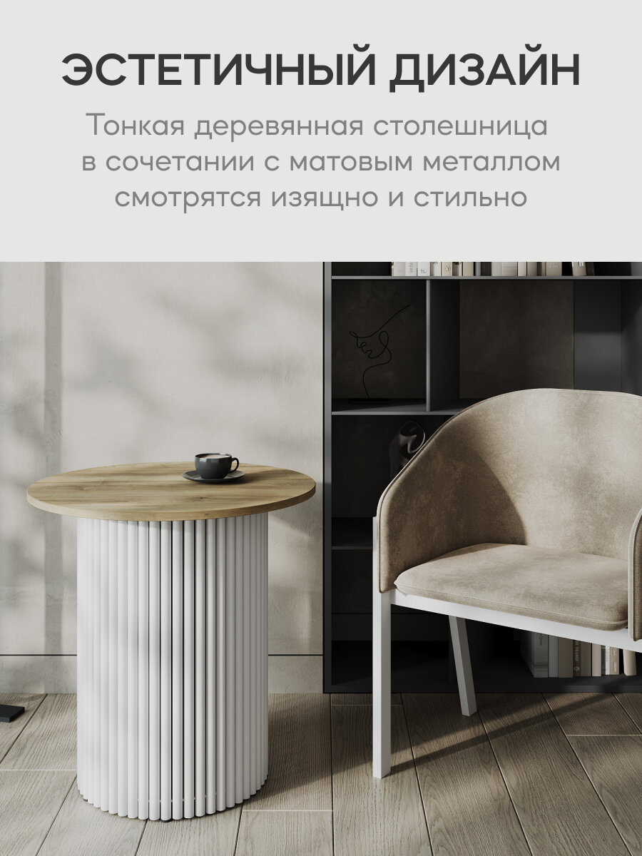 GEN GROUP Стол журнальный круглый TRUBIS Wood M D100 белый с металлическим подстольем