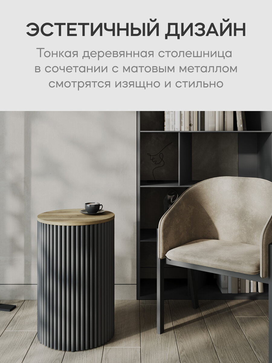 GEN GROUP Стол круглый журнальный TRUBIS Wood D120 см, черный, с металлическим подстольем