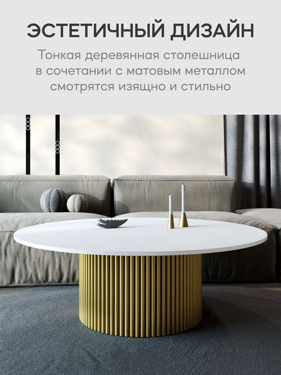 СохранитьGEN GROUP Стол круглый журнальный TRUBIS Wood D120 см, белый, с золотым подстольем интересное: