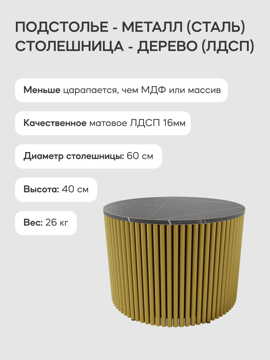 СохранитьGEN GROUP Стол журнальный лофт TRUBIS Wood M D60 черный мрамор с золотым металлическим подстольем интересное: