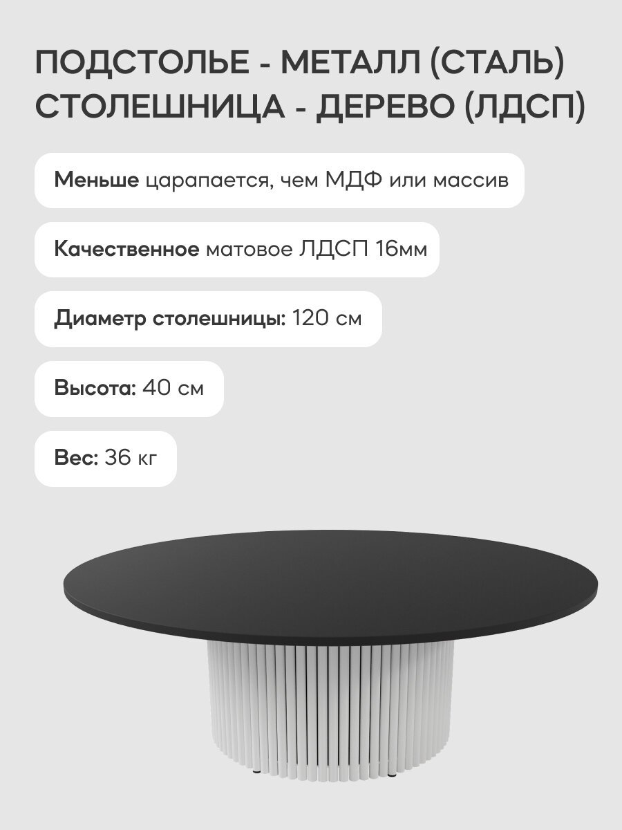 Купить GEN GROUP Стол круглый журнальный TRUBIS Wood D120 см, черный, с белым металлическим подстольем