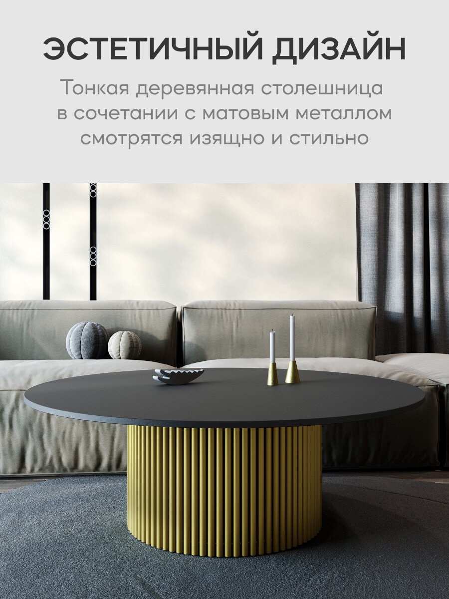 СохранитьGEN GROUP Стол круглый журнальный TRUBIS Wood D120 см, черный, золотое металлическое подстолье интересное: