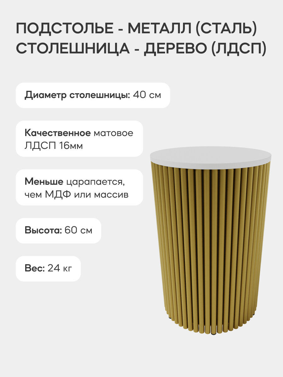 Купить GEN GROUP Журнальный столик TRUBIS Wood S D40 белый с золотым металлическим подстольем