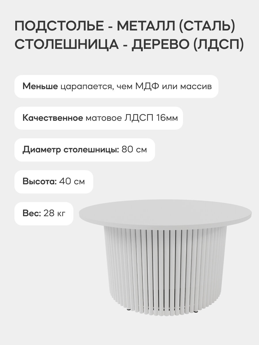 GEN GROUP Стол круглый журнальный TRUBIS Wood D120 см, белый, с металлическим подстольем