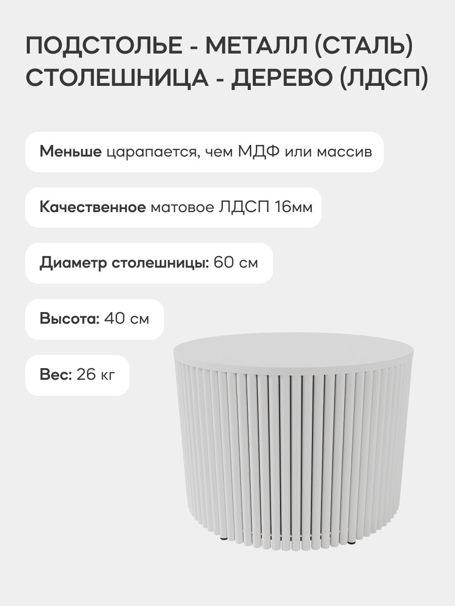 СохранитьGEN GROUP Стол журнальный белый TRUBIS Wood M D60 с металлическим подстольем интересное: