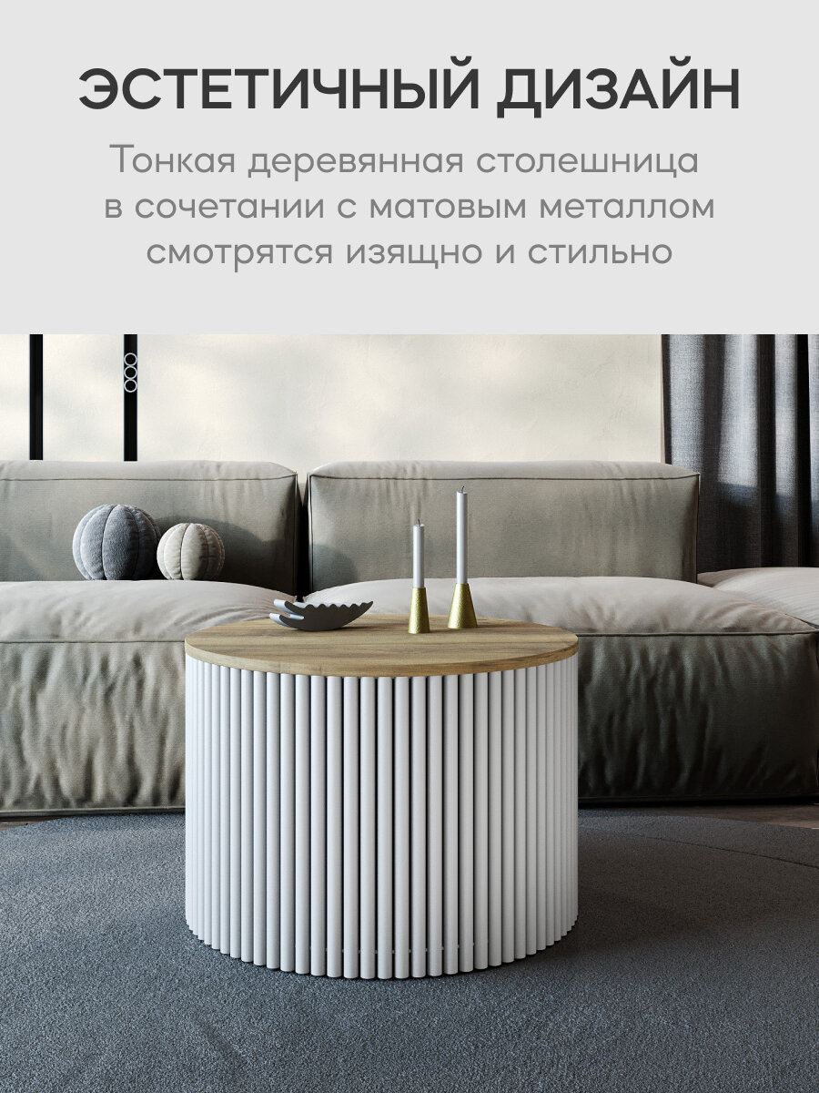 СохранитьGEN GROUP Журнальный стол круглый TRUBIS Wood M D60 металлический бежевый с белым подстольем интересное: