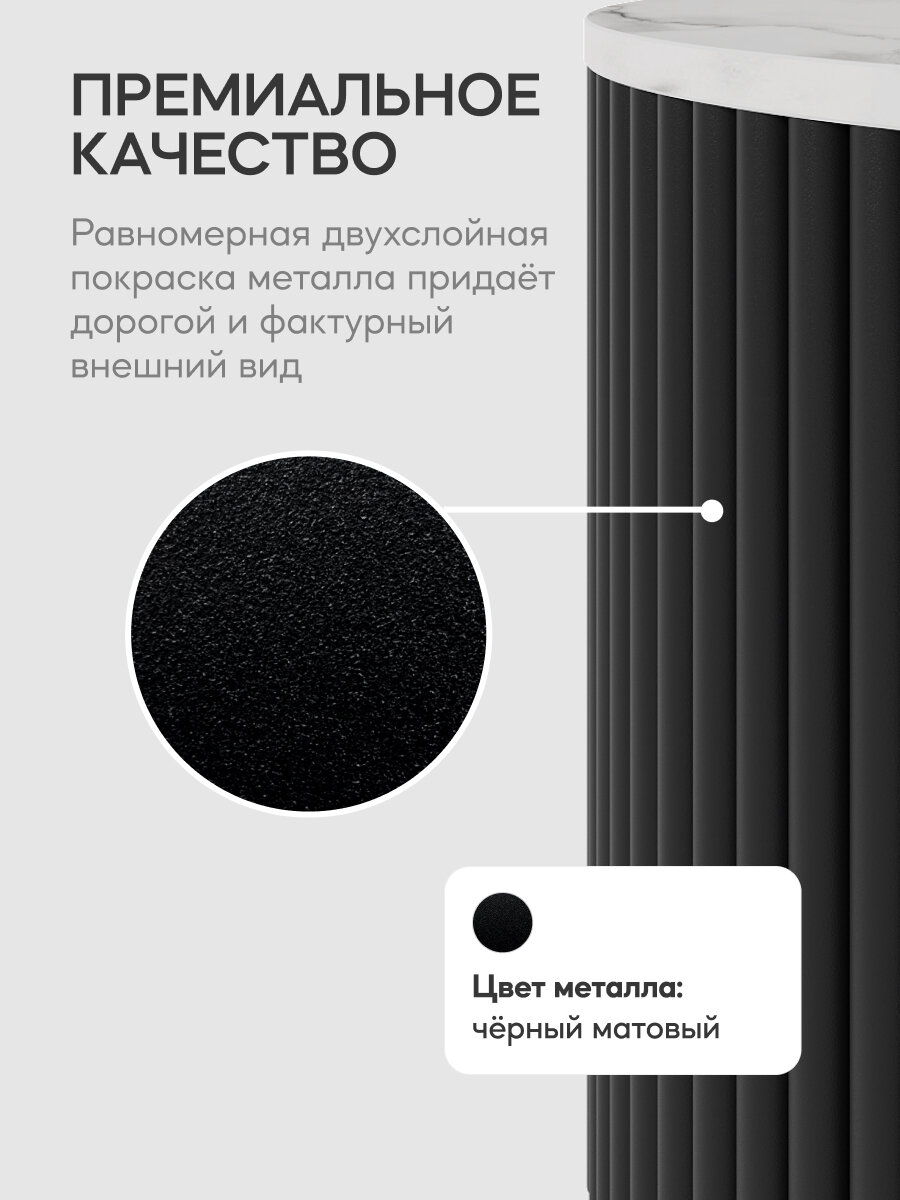 GEN GROUP Журнальный столик TRUBIS Wood M D80 черный мрамор с белым металлическим подстольем