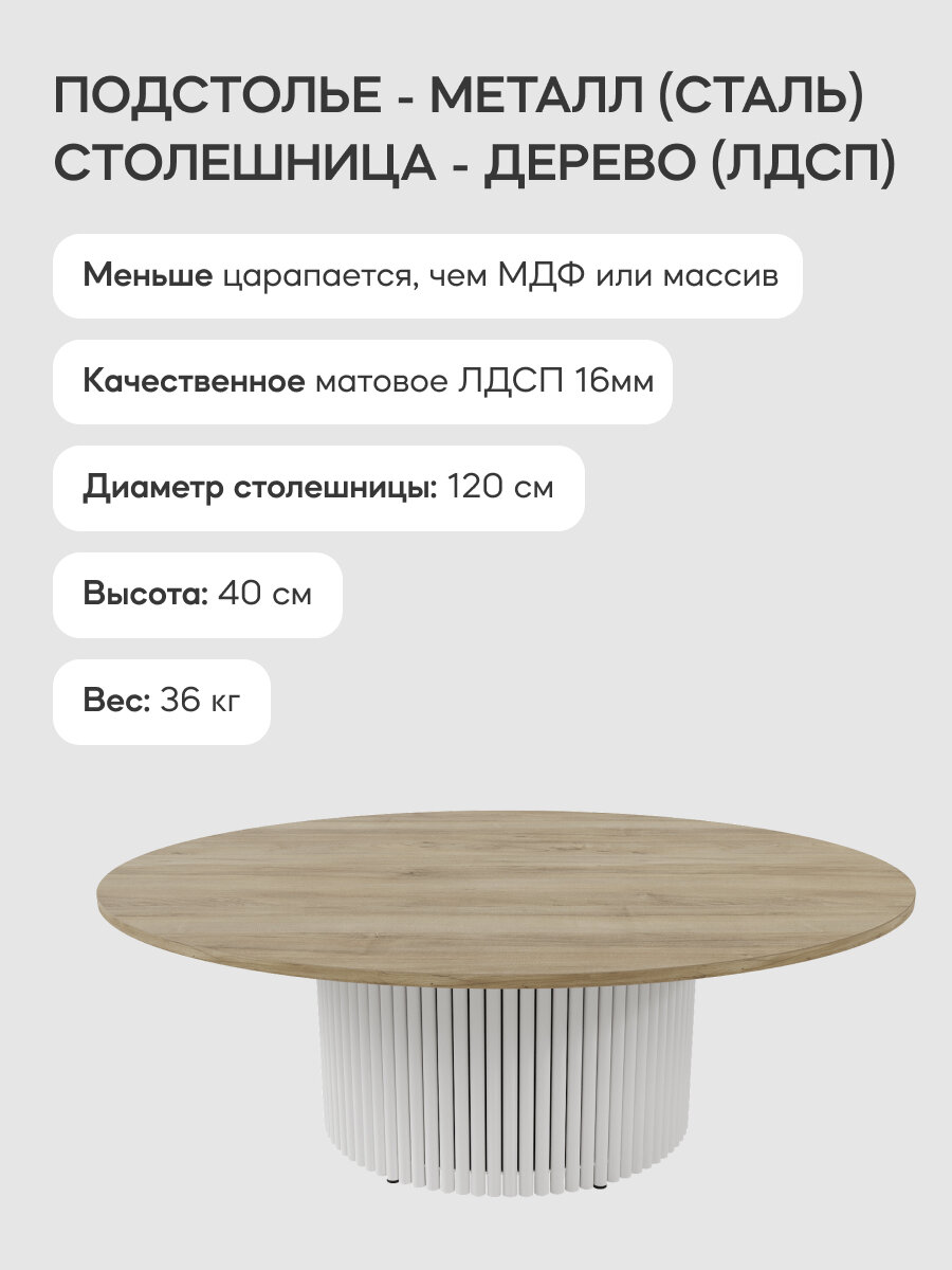 GEN GROUP Стол круглый журнальный TRUBIS Wood D120 см, белый, с металлическим подстольем