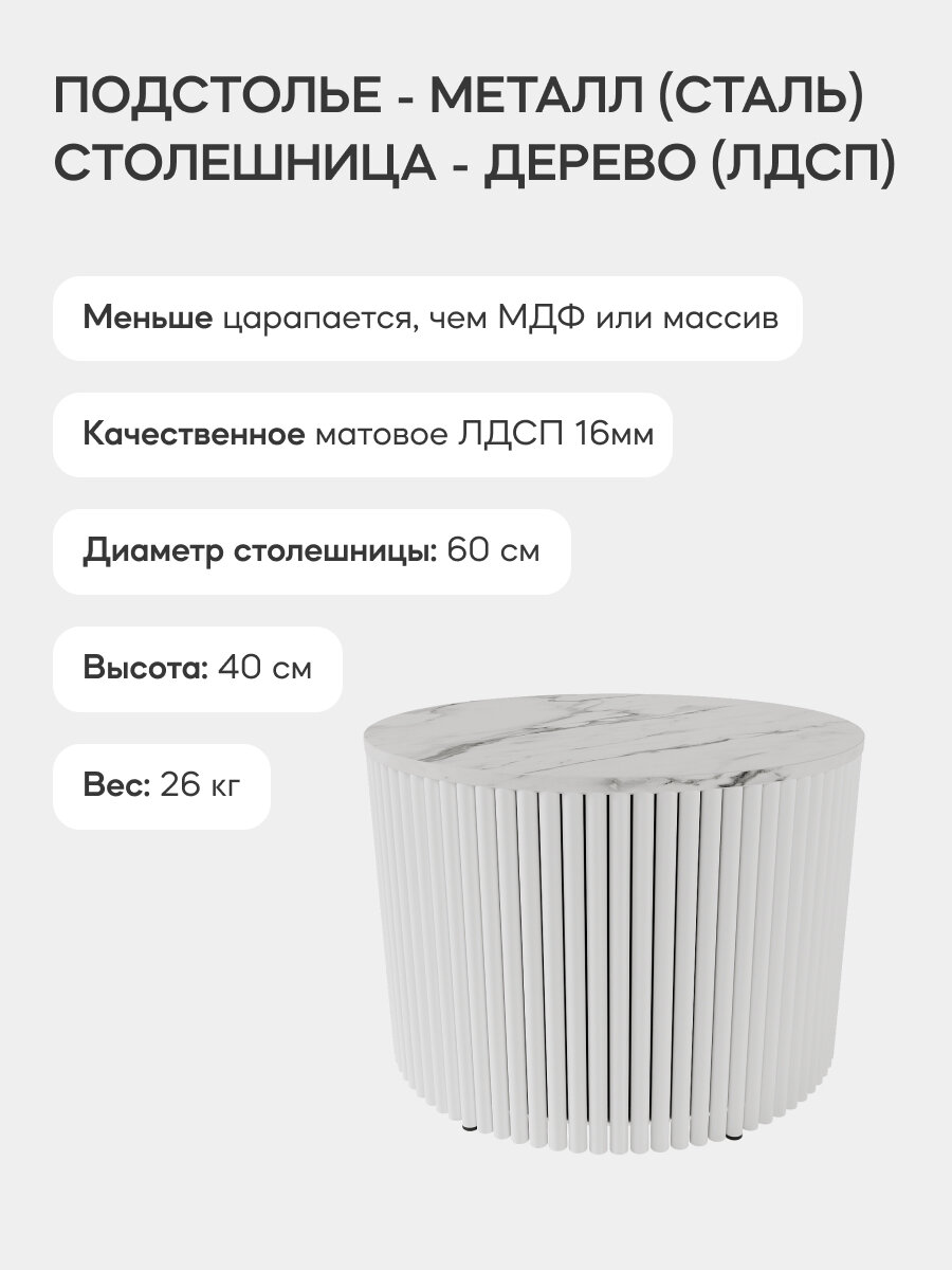 СохранитьGEN GROUP Стол журнальный лофт TRUBIS Wood M D60 белый мрамор с белым металлическим подстольем интересное: