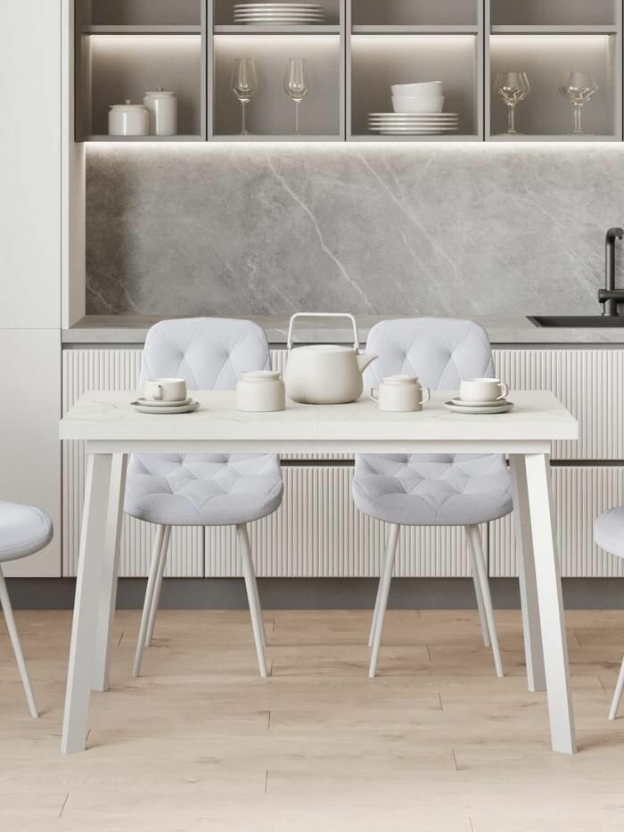 Кухонный стол Бернс 120х77х70 см, раздвижной, Мрамор белый, Белый металл интересное: