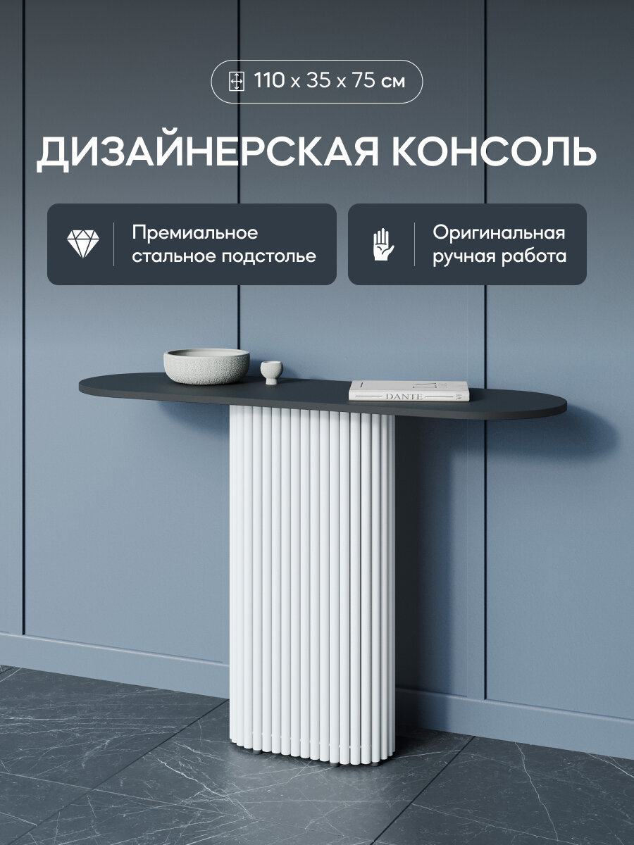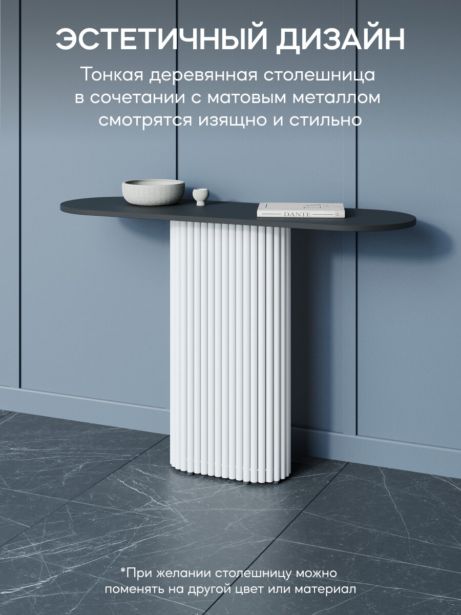 GEN GROUP Консоль TRUBIS с белым металлическим подстольем и чёрной столешницей, 110*35см интересное: