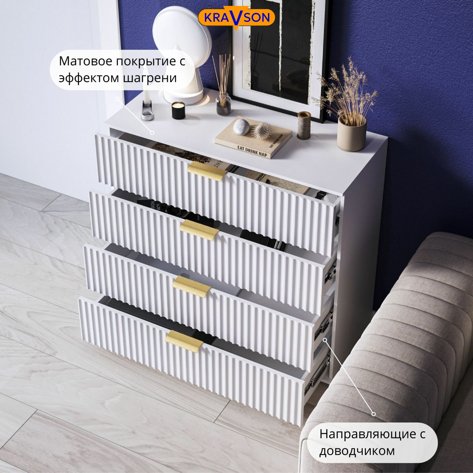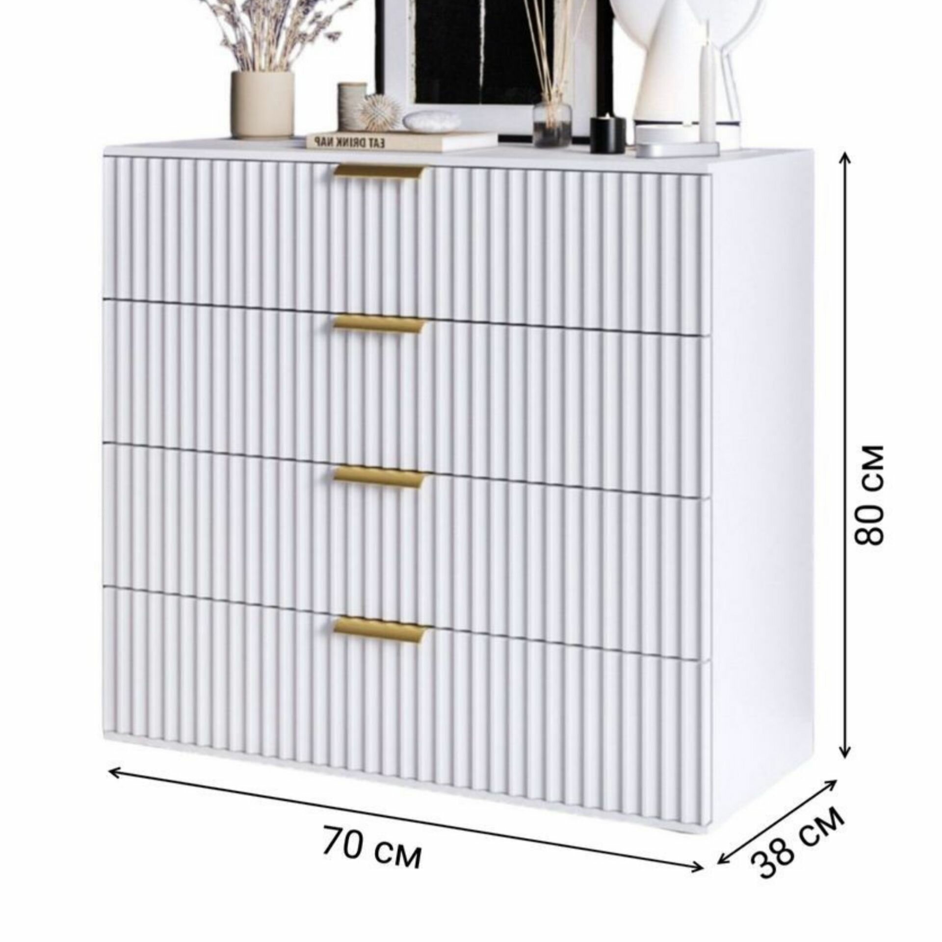 Комод, тумба прикроватная белая, 4 ящика с золотыми ручками, 70x38x80 см интересное: