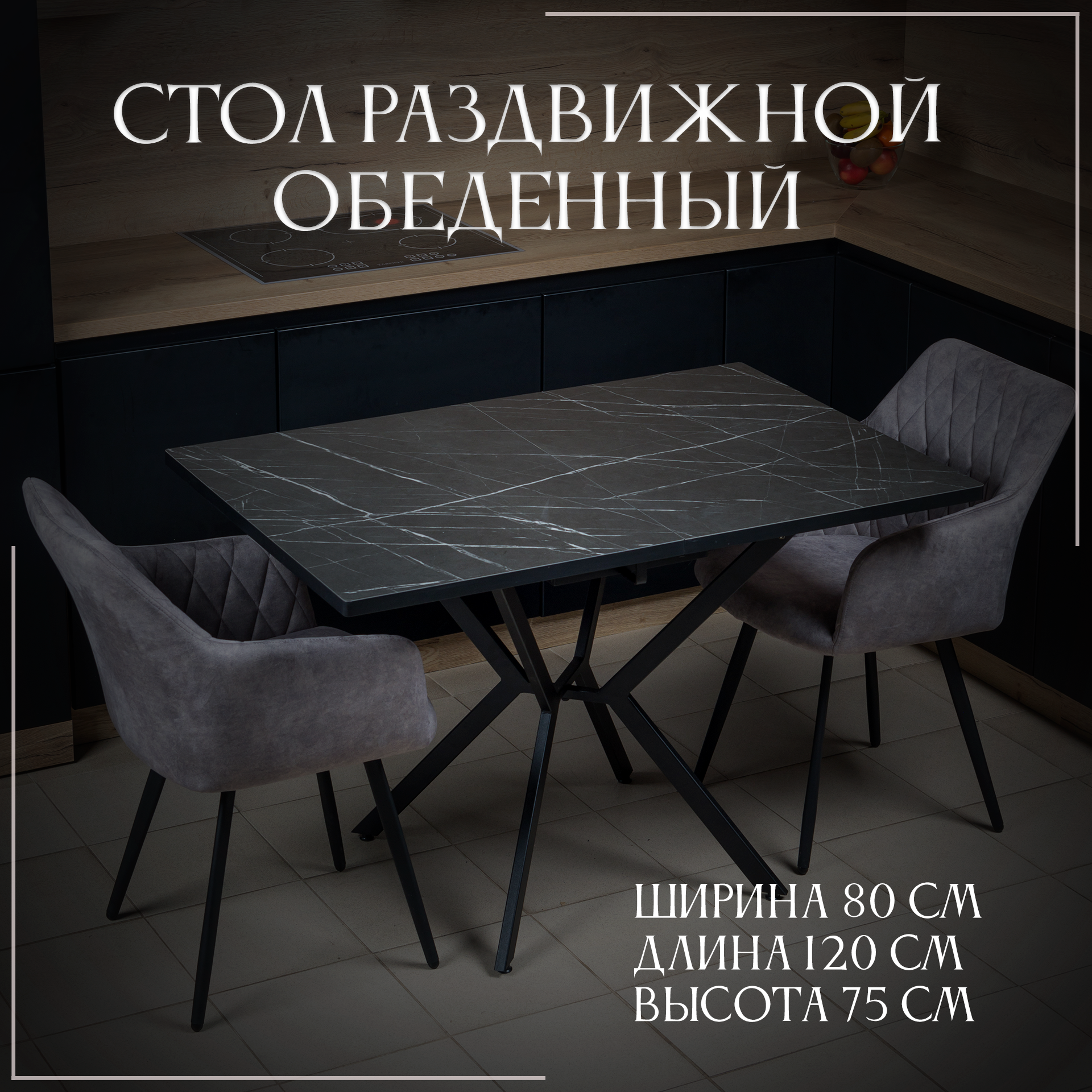 Купить Стол кухонный раздвижной от Фабрики Лофт Сити "Париж", 120х80, Черный мрамор