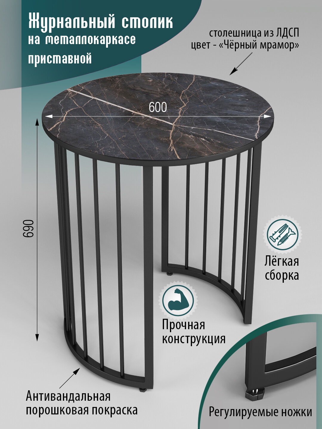 Купить Приставной журнальный столик Омега , черный мрамор/черный