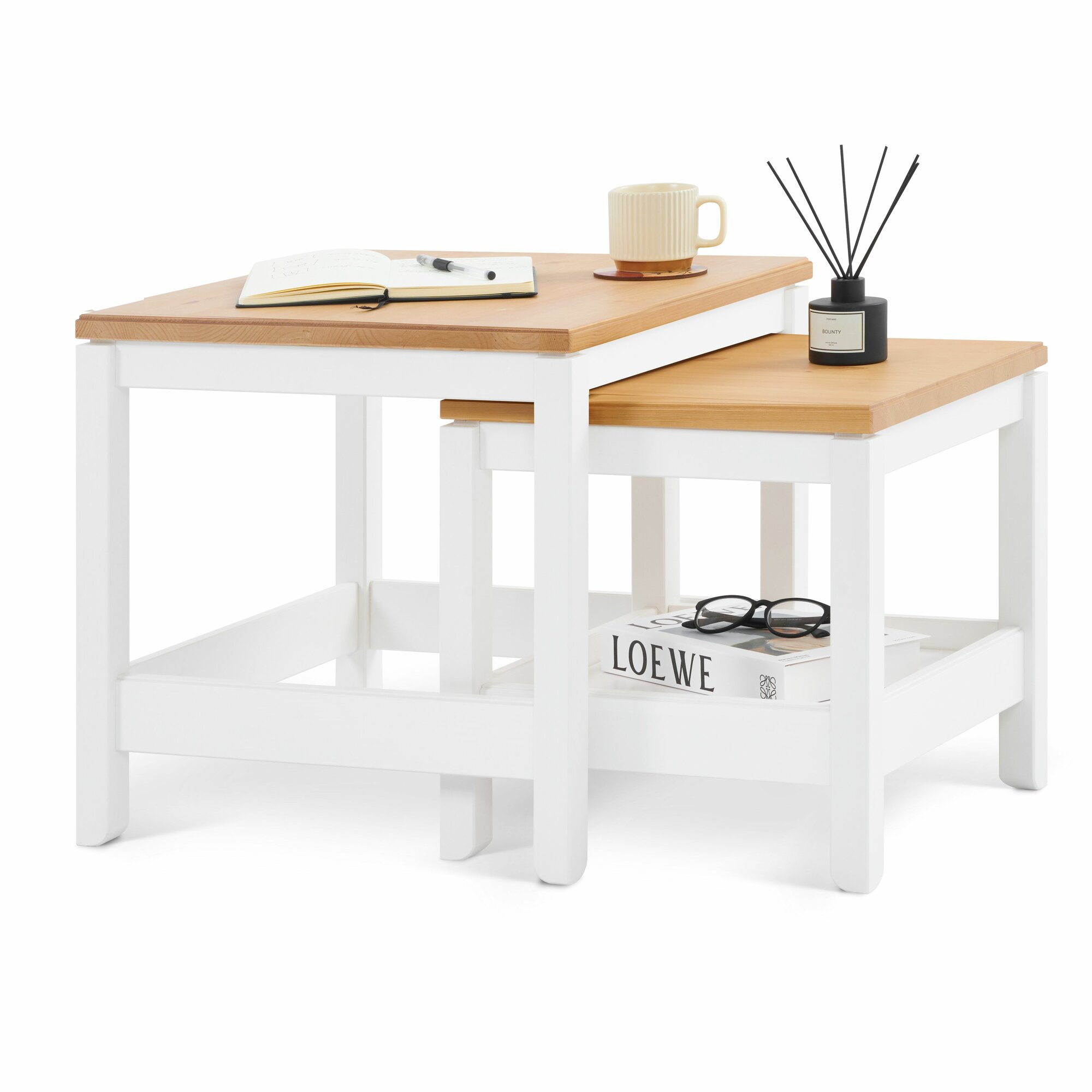 Комплект журнальных столов кодзув, 2 шт белый/светло-коричневый интересное:
