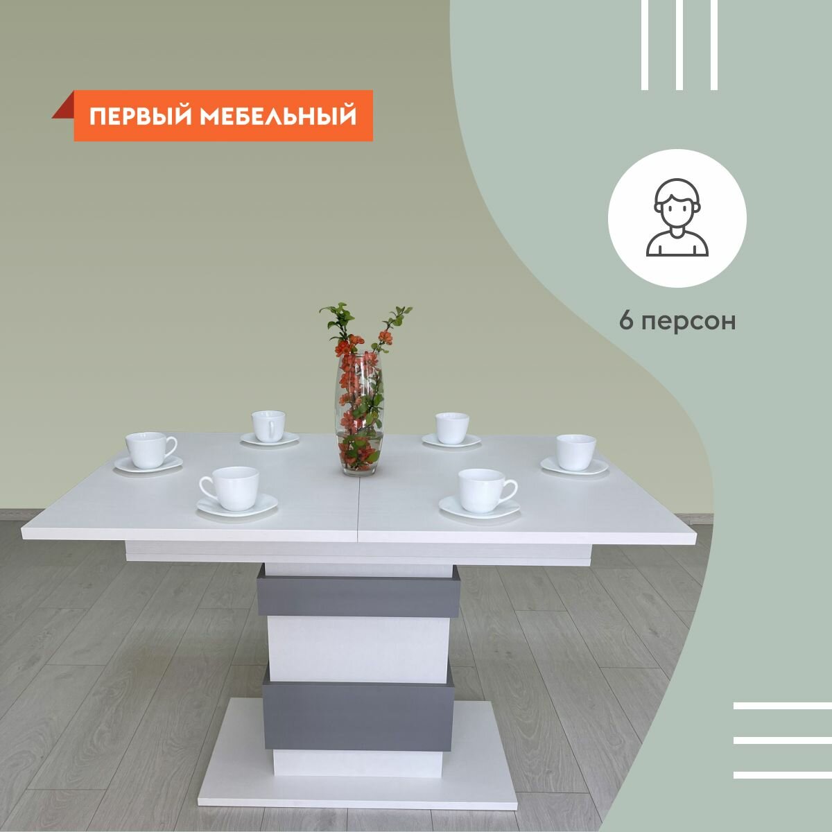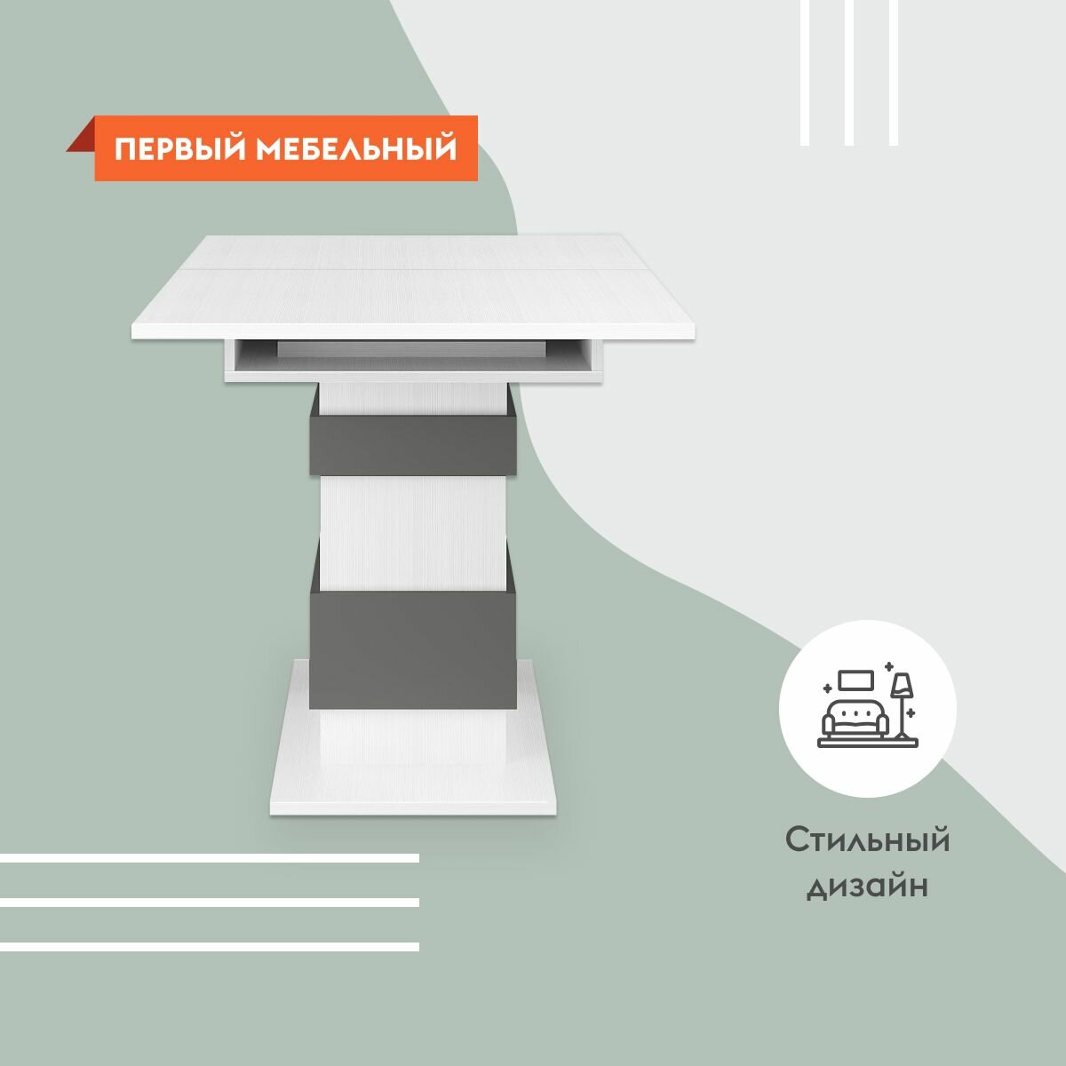 Кухонный, обеденный стол Мортен раздвижной, раскладной, на одной ножке, 118х76х76 см, Белый структурный / Дымчатый алмаз интересное:
