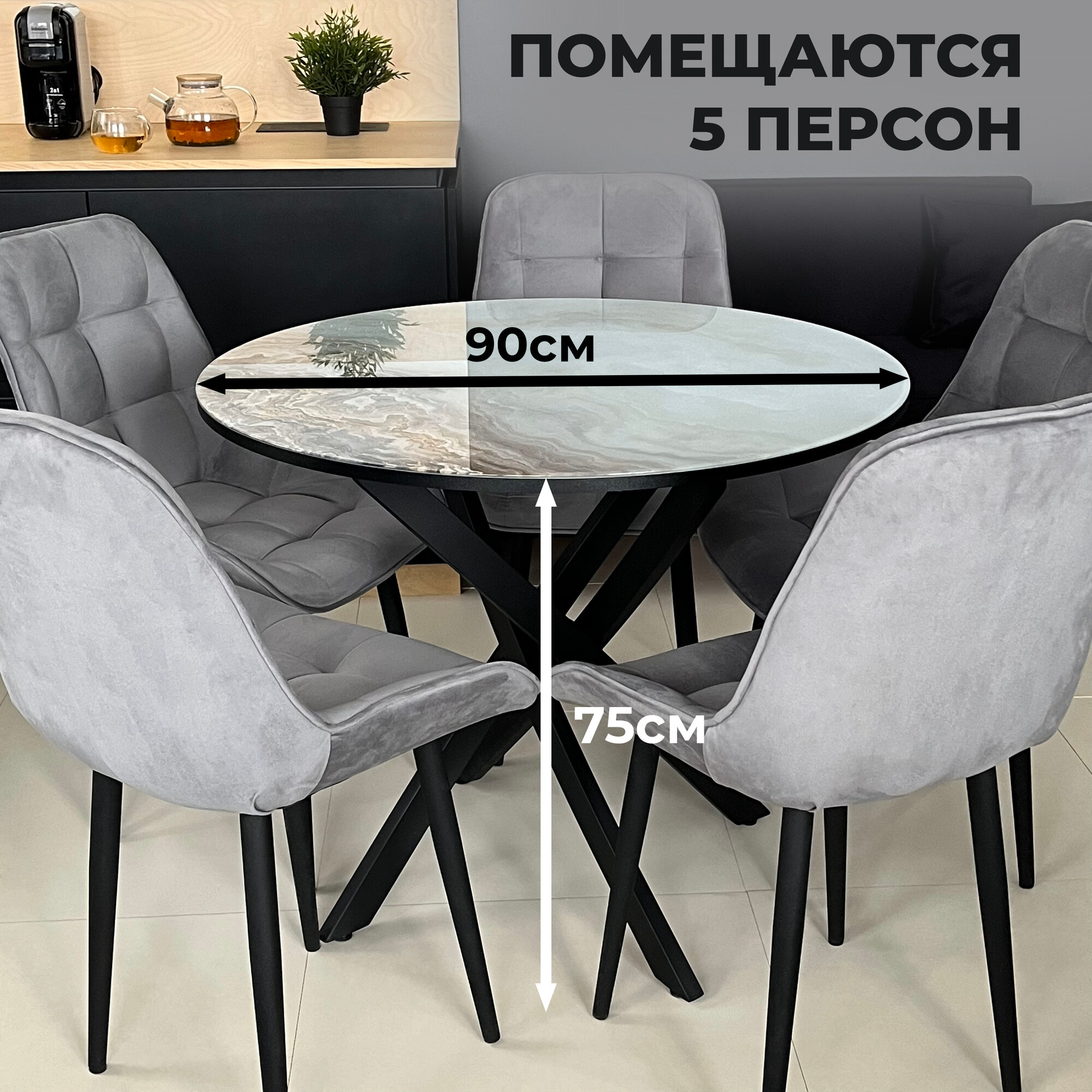 СохранитьСтол обеденный Сеул нераздвижной, 90х90х75 см Оникс с черными опорами интересное: