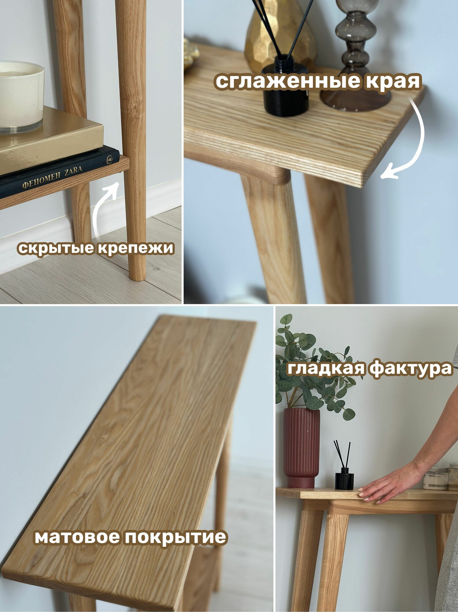 Консольный столик из Ясеня с полочкой (глубина 20 см) в прихожую интересное: