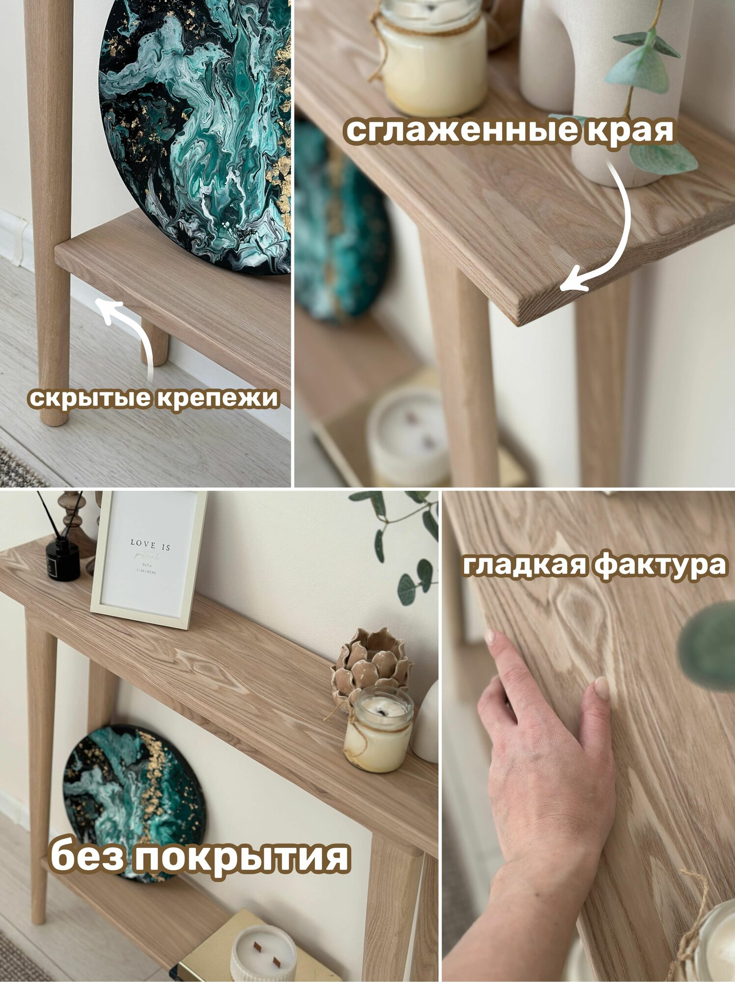 Консоль из Ясеня с полочкой (глубина 20 см) без покрытия интересное: