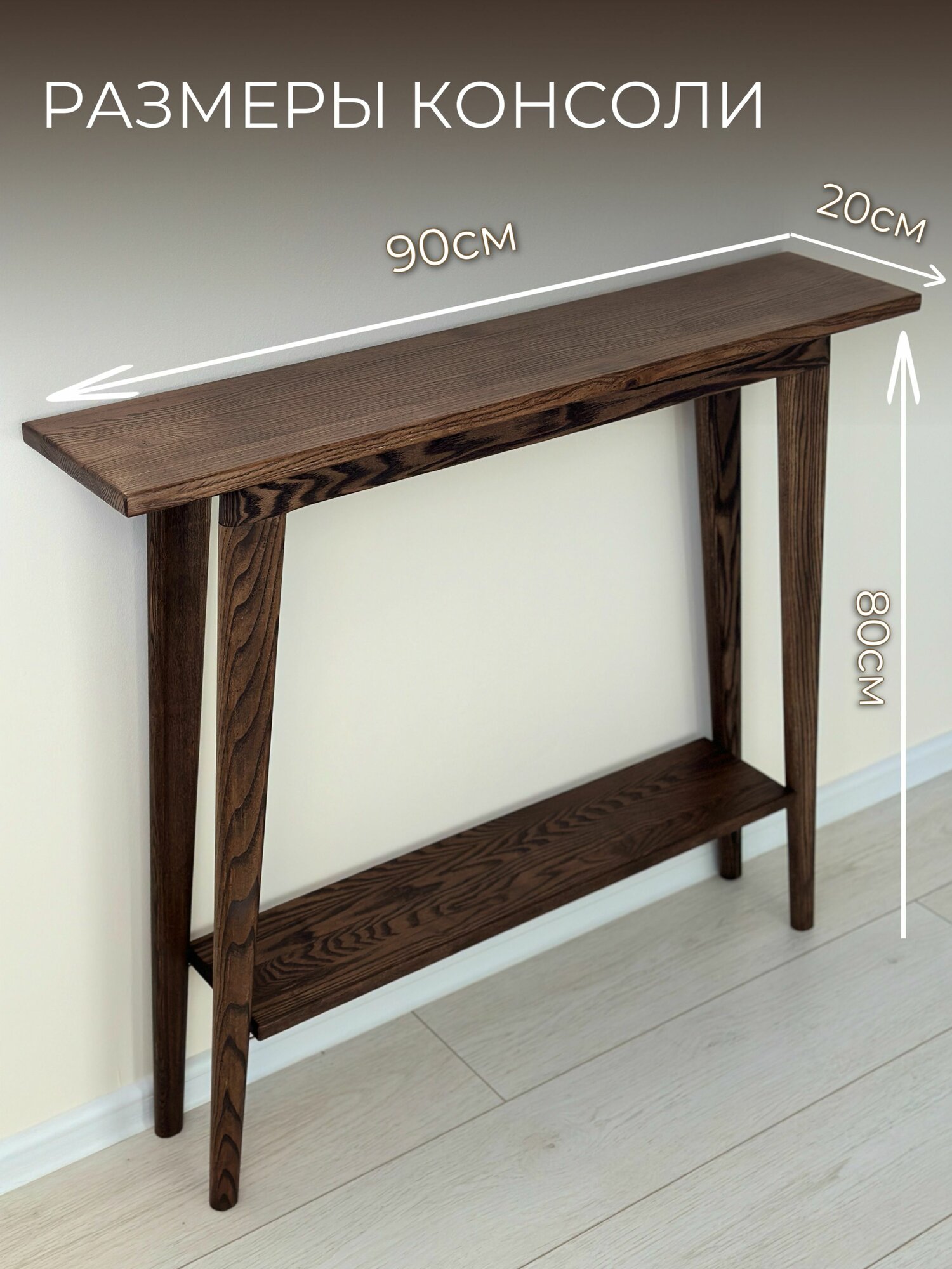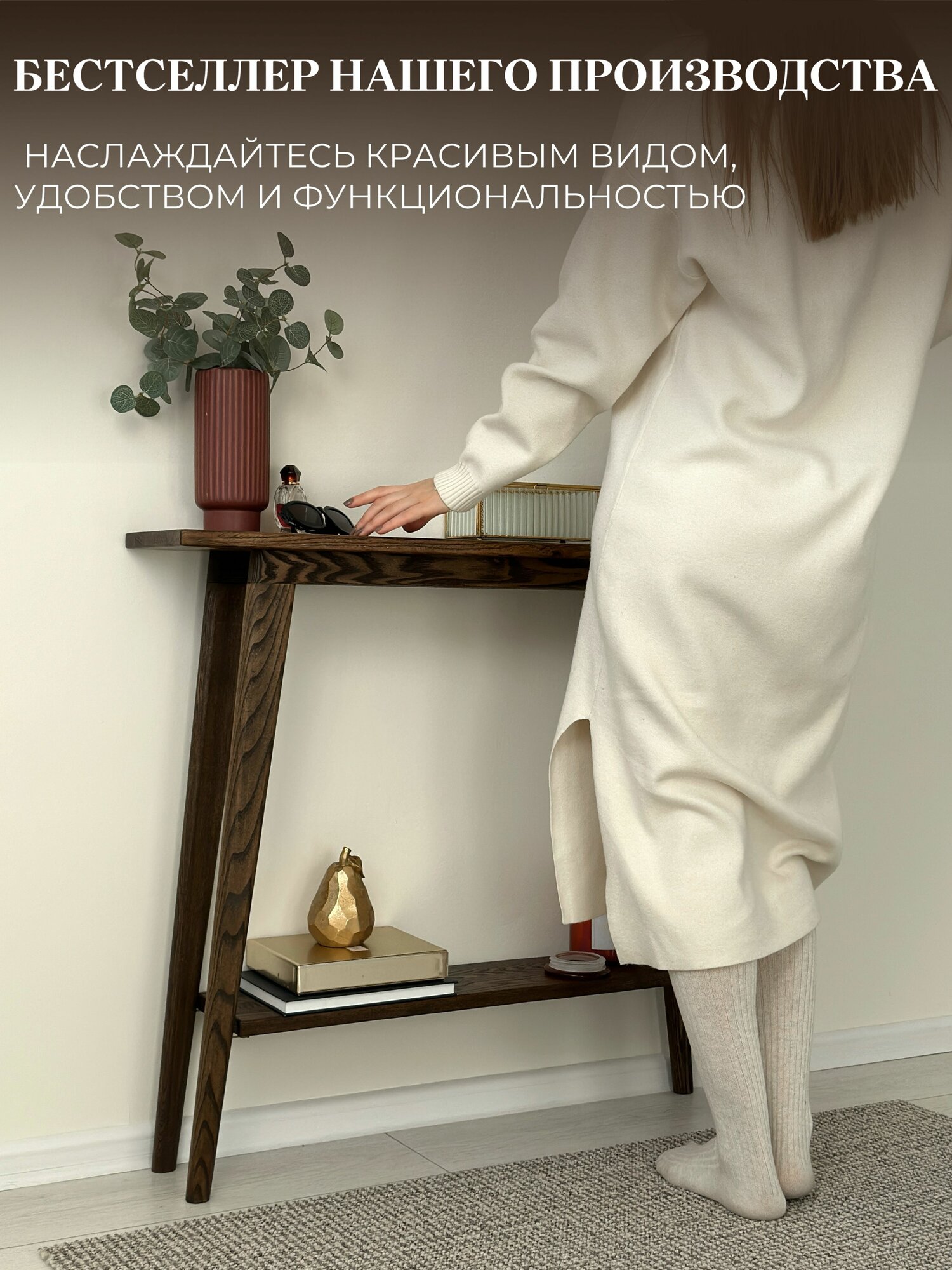 Купить Консоль из Ясеня с полочкой (глубина 20 см) Цвет Коричневый (дуб табак)