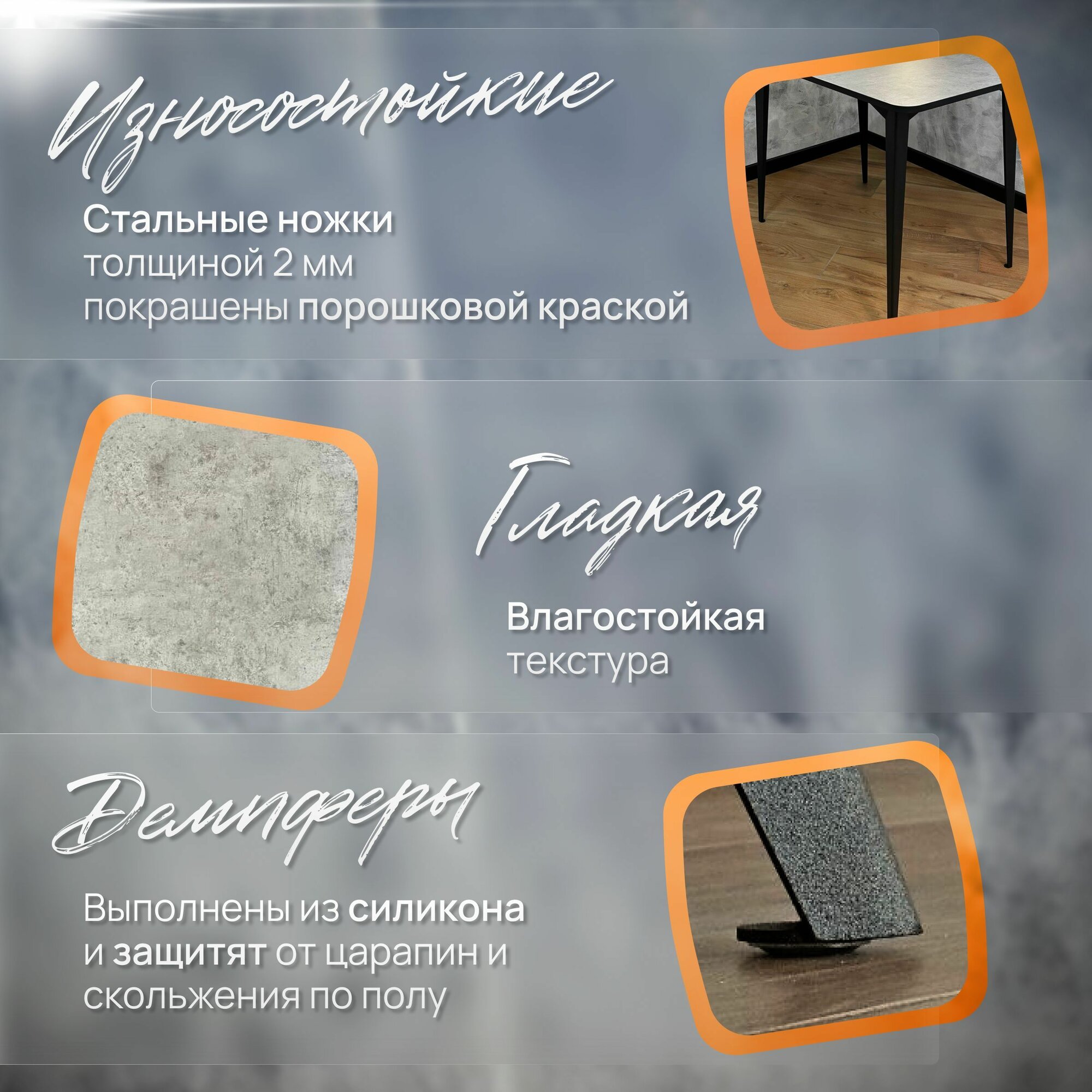 Стол кухонный обеденный квадратный 90х90 чайный цвет серый бетон