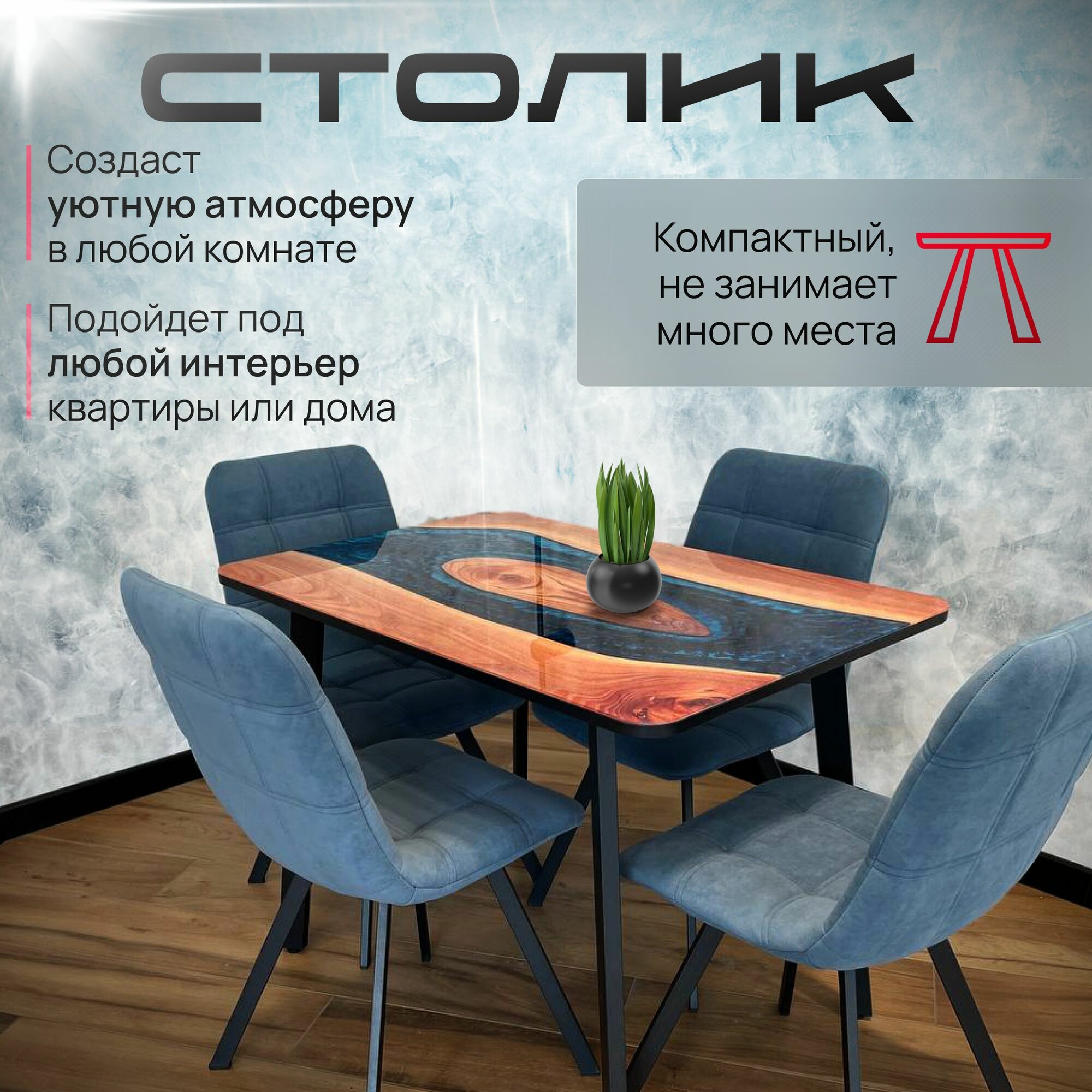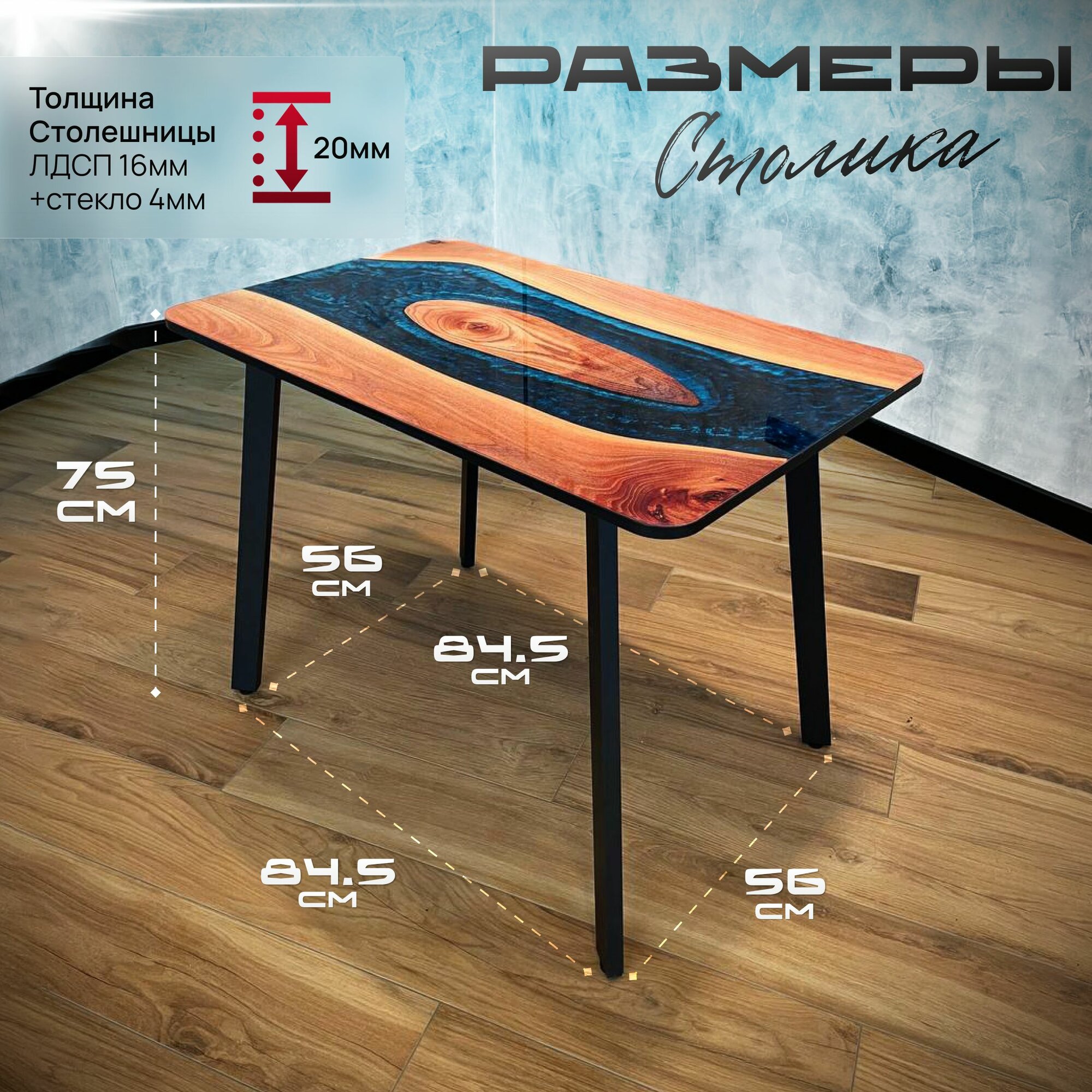 СохранитьСтол кухонный обеденный прямоугольный стеклянный 100х65 чайный эпоксидная смола река интересное: