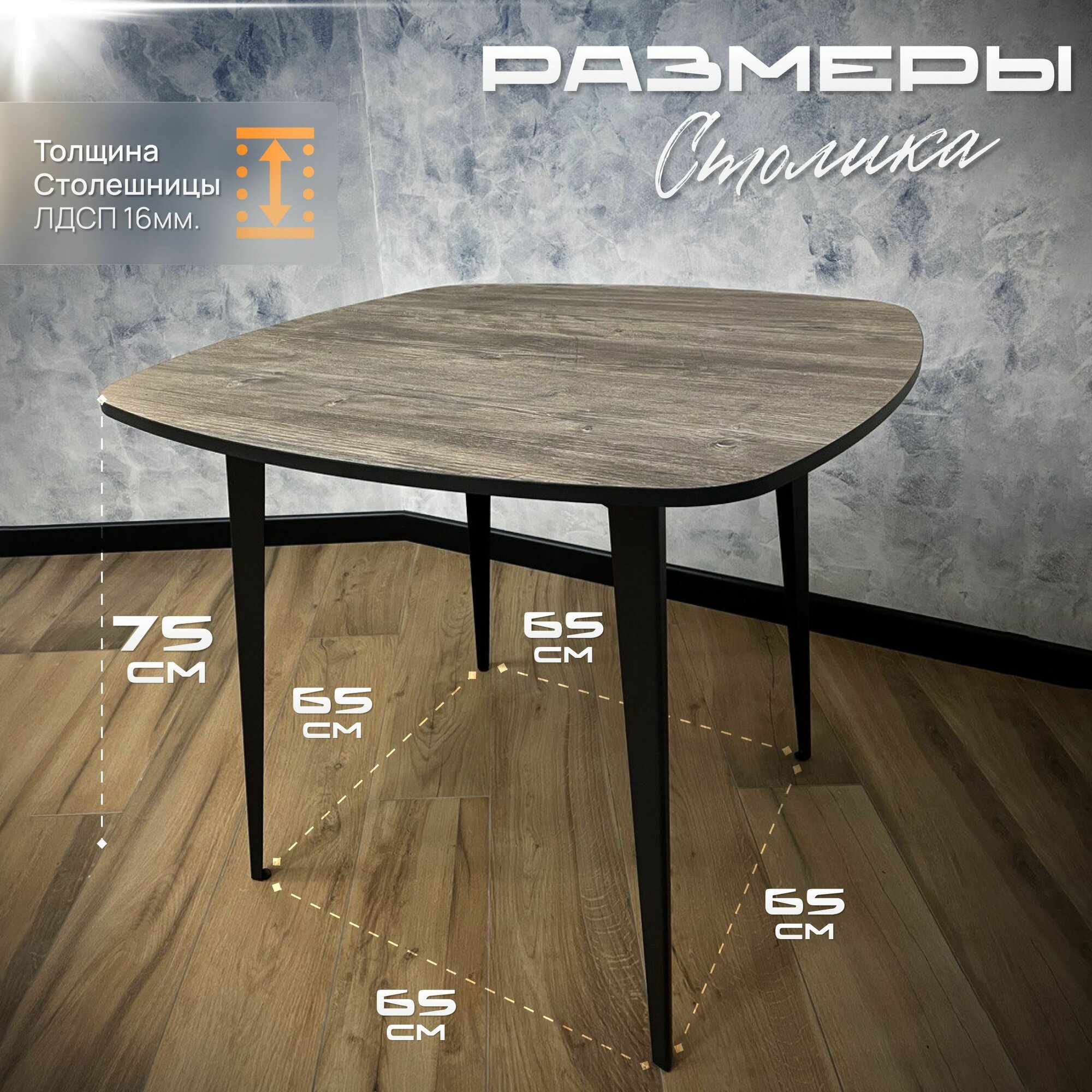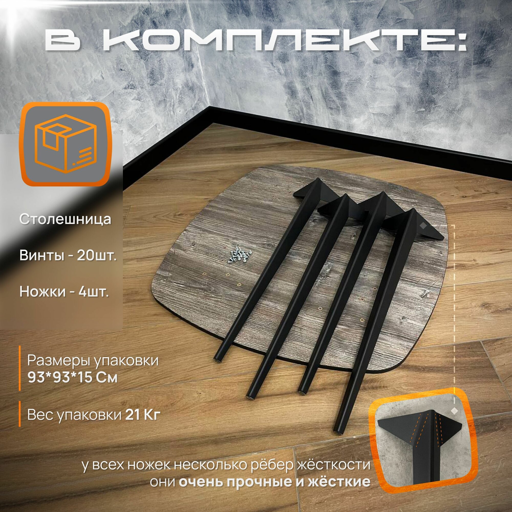 Стол кухонный обеденный квадратный 90х90 чайный цвет серый бетон