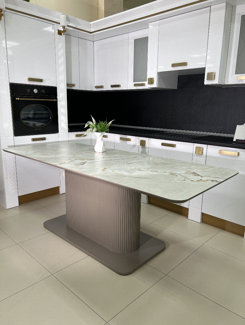 Стол-книжка кухонный, обеденный Грэй раскладной, с ящиками, 182.6х78х75.3 см, Белый шагрень