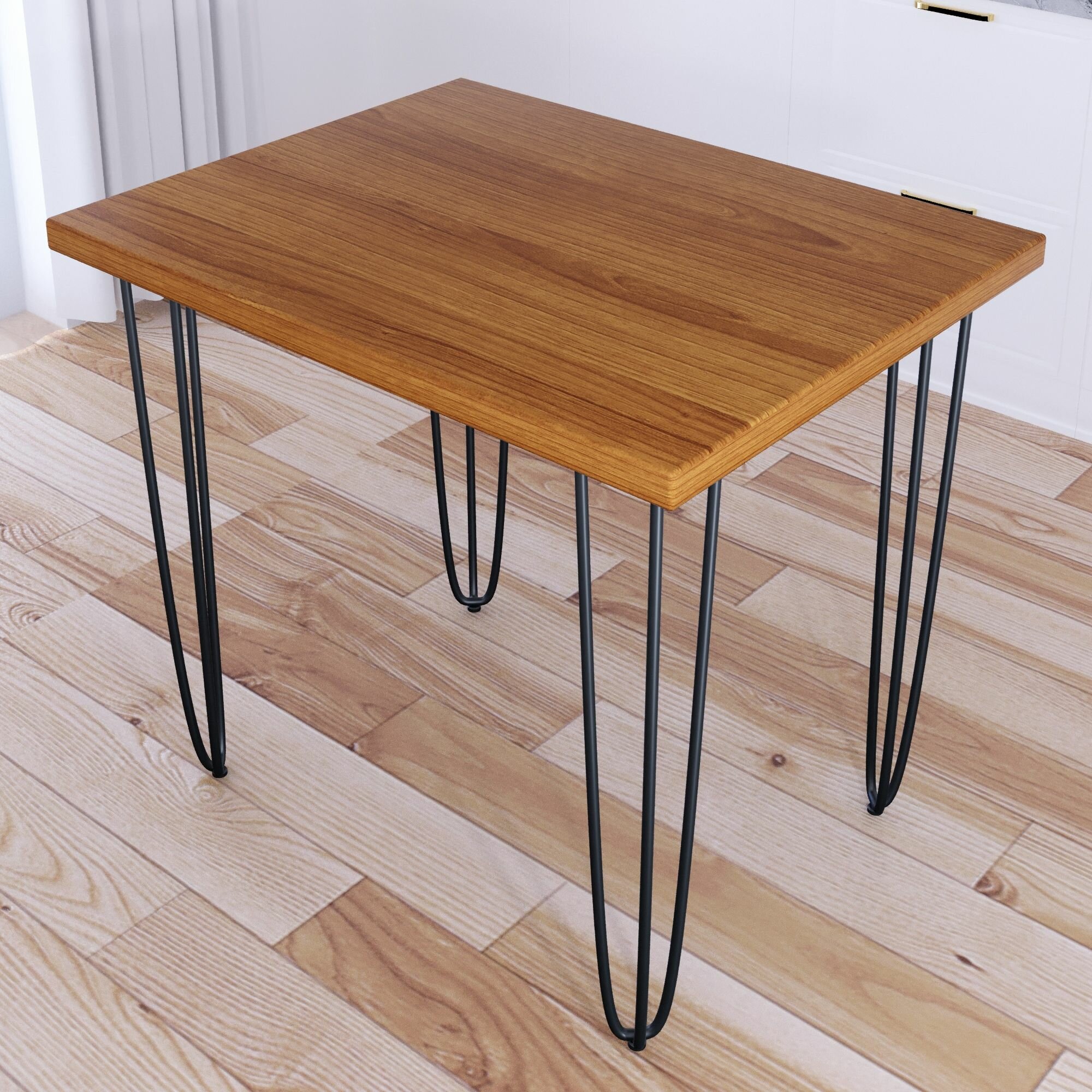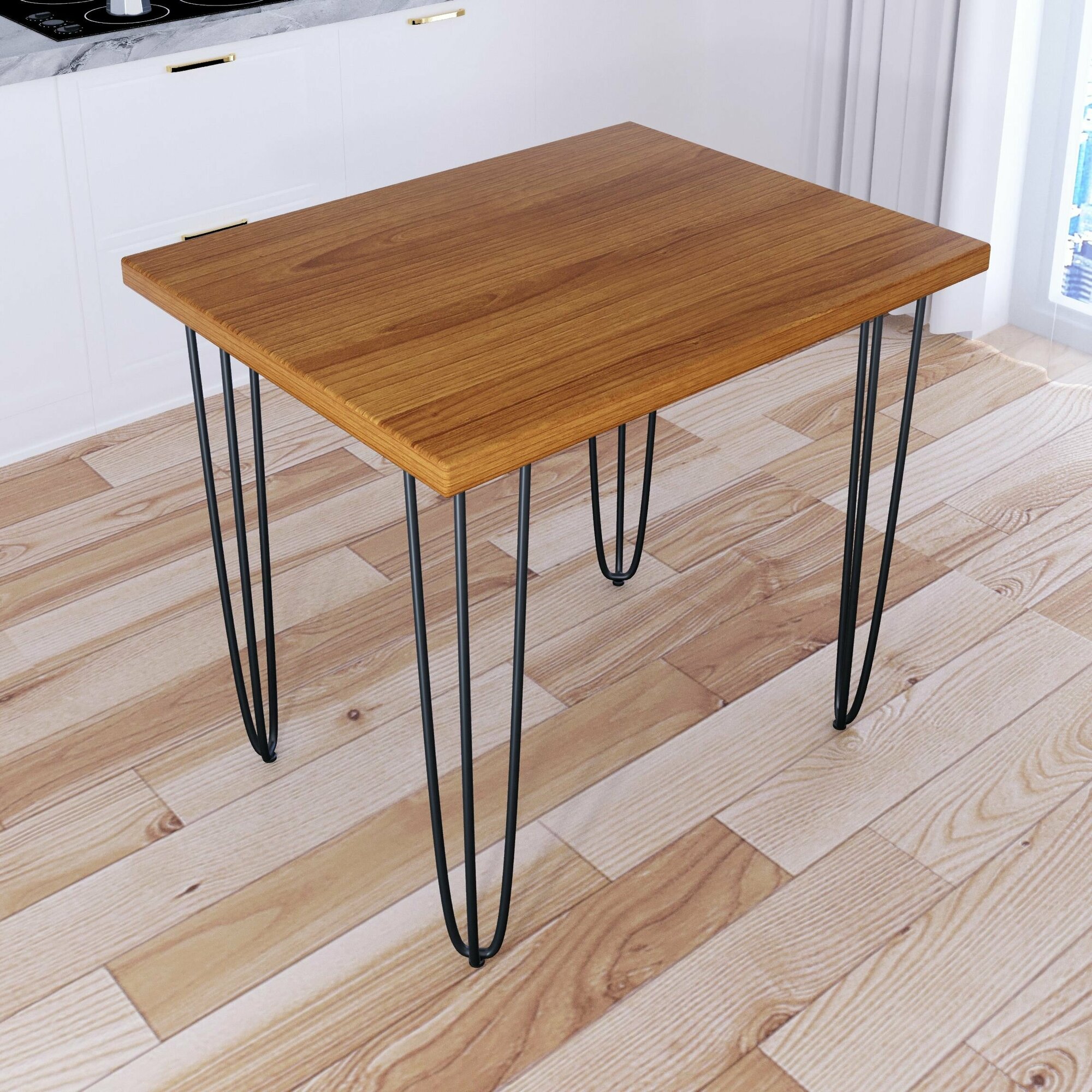 Купить Стол кухонный Loft со столешницей цвета ольхи из массива сосны 40 мм на черных металлических ножках-шпильках, 110x80х75 см