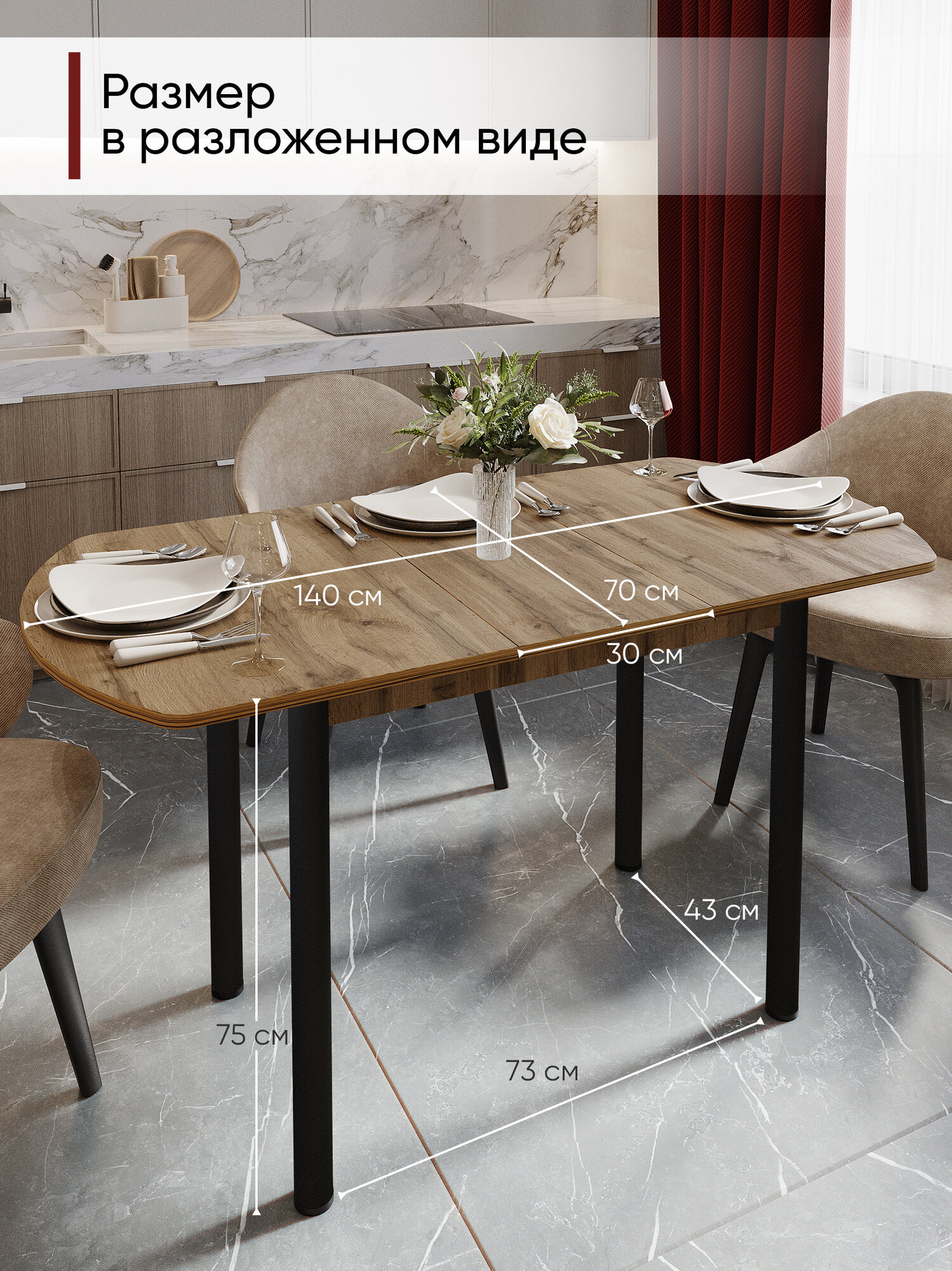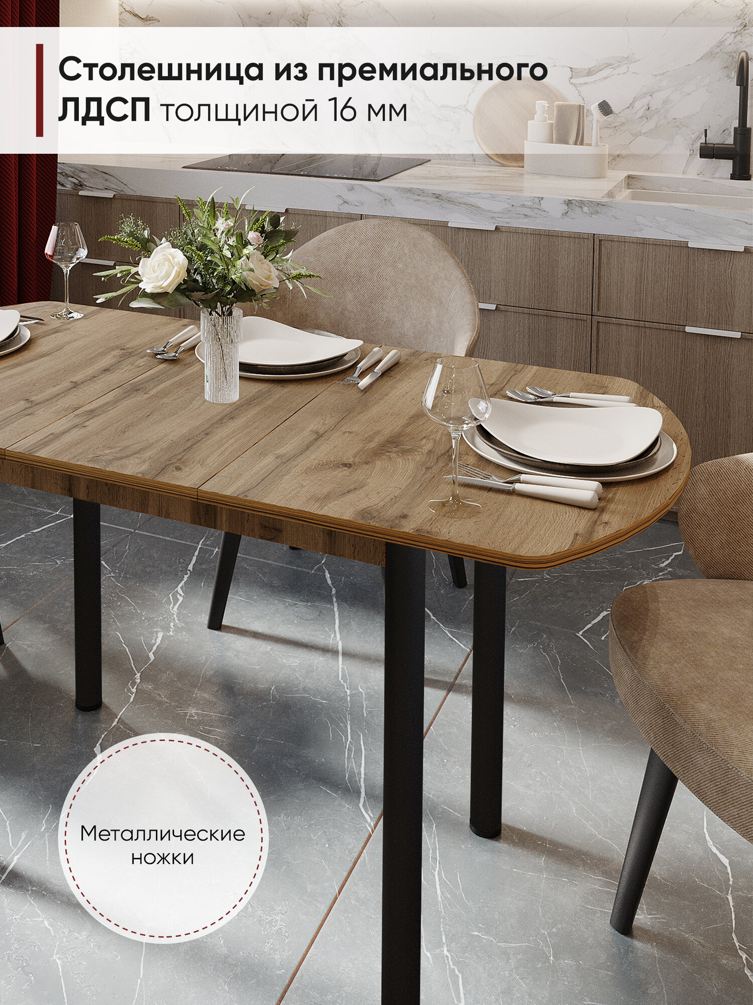 СохранитьСтол кухонный обеденный раздвижной Европейский, Дуб вотан, 110-140х70х75 см интересное: