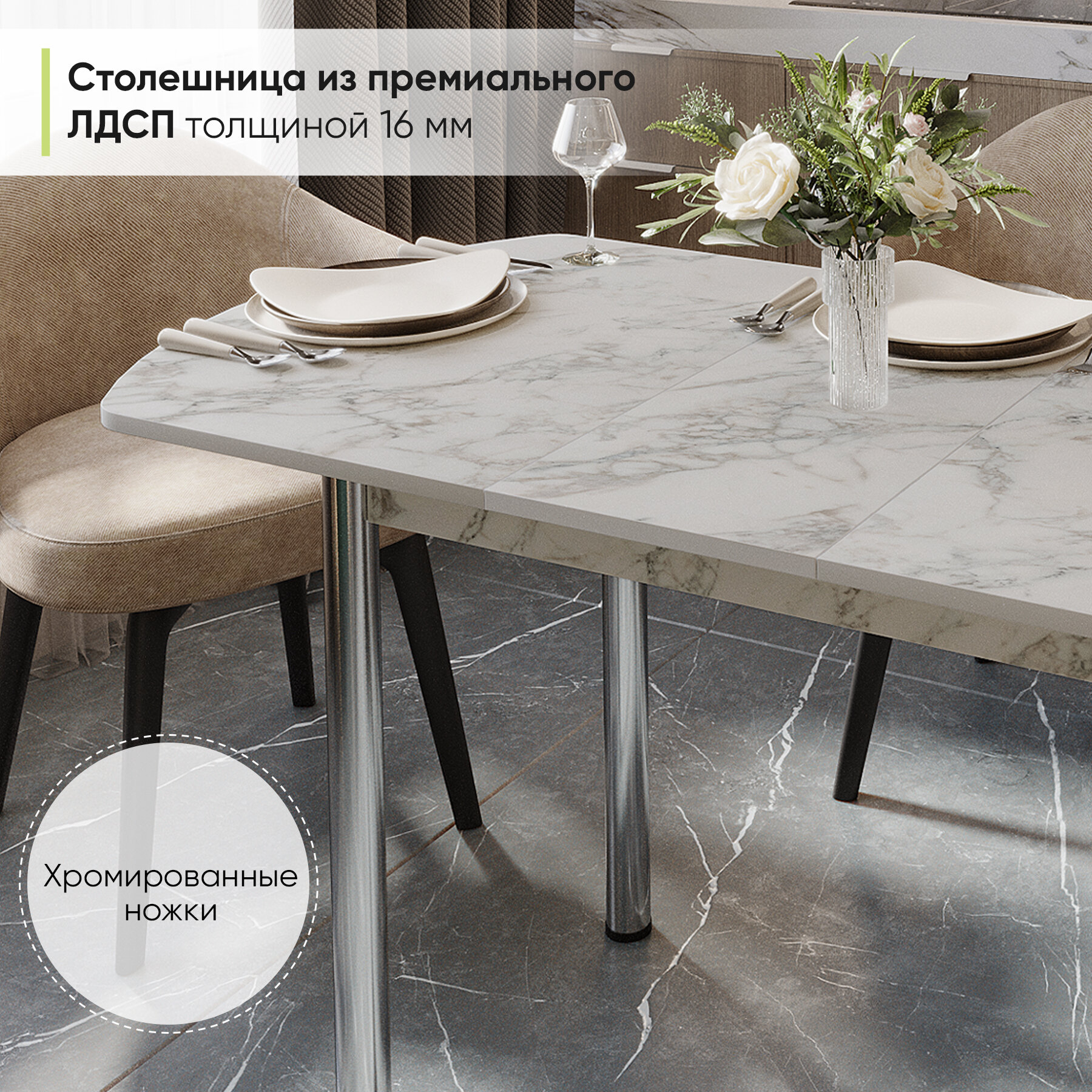 Купить Стол кухонный обеденный раздвижной европейский, Белый мрамор, 110-140х70х75 см