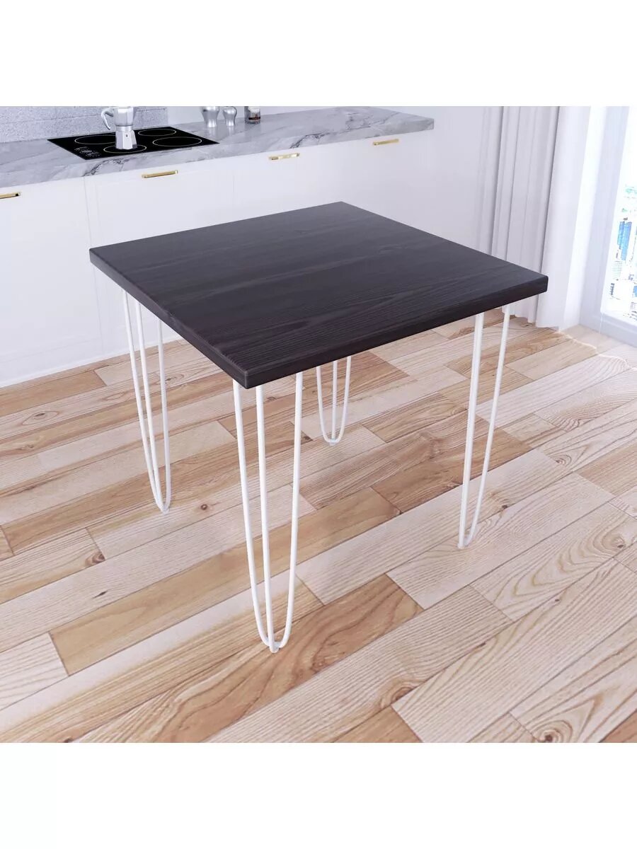 Купить Стол кухонный Loft с квадратный столешницей цвета венге из массива сосны 40 мм и белыми ножками-шпильками, 60x60х75 см