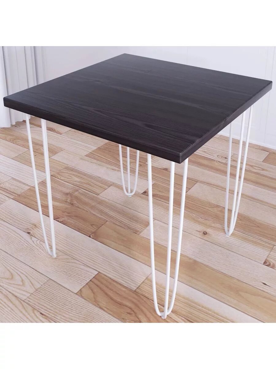 Стол кухонный Loft с квадратный столешницей цвета венге из массива сосны 40 мм и белыми ножками-шпильками, 60x60х75 см интересное:
