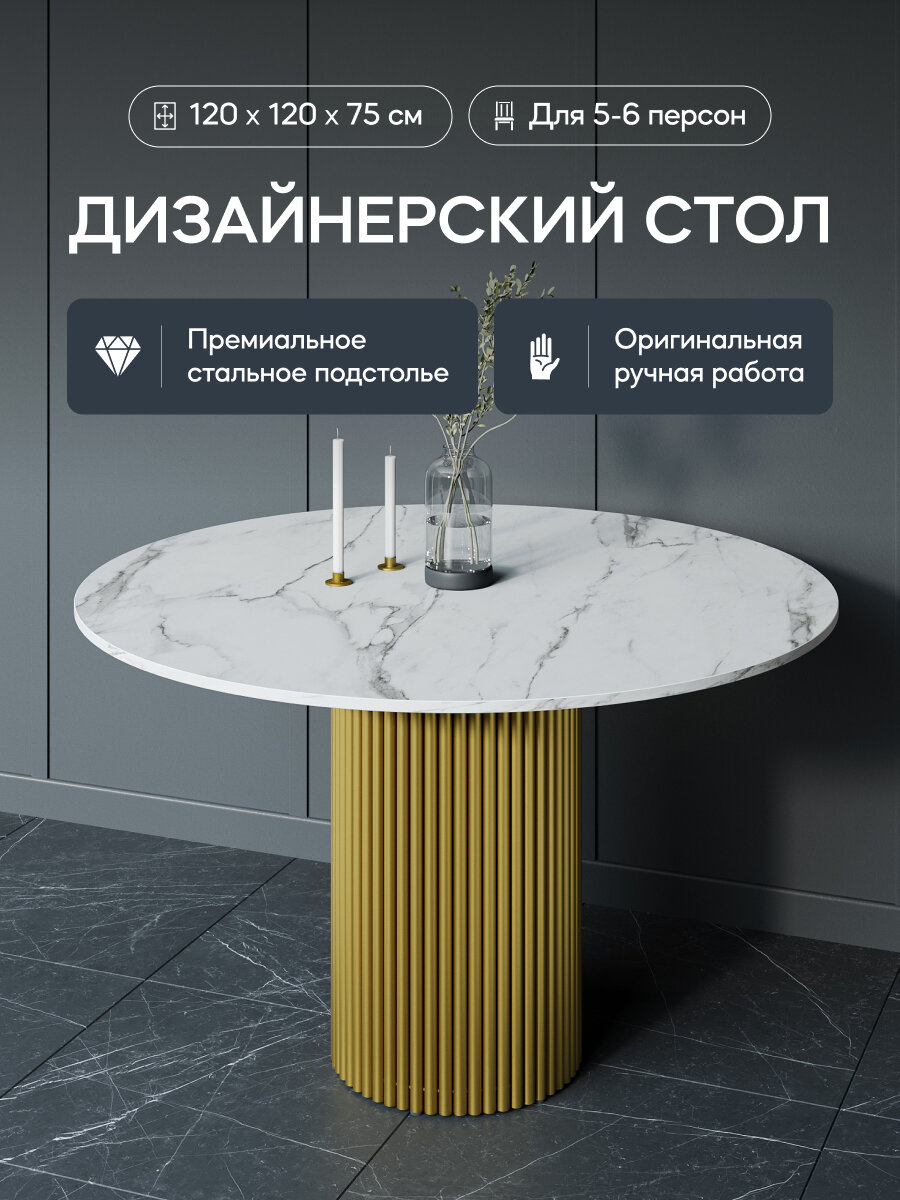 СохранитьGEN GROUP Стол обеденный кухонный TRUBIS Wood L D120 см белый мрамор с золотым подстольем интересное:
