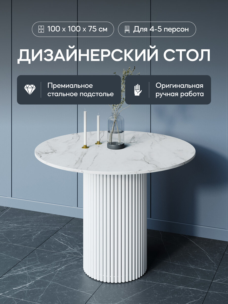 СохранитьGEN GROUP Кухонный обеденный стол TRUBIS Wood L D100 см белый мрамор с белым подстольем интересное: