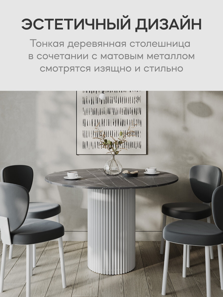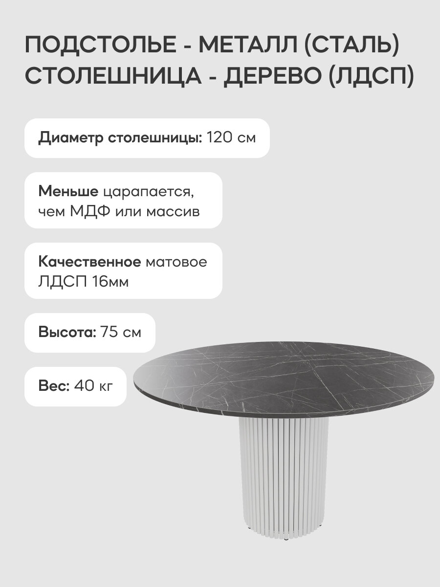 СохранитьGEN GROUP Стол обеденный кухонный TRUBIS Wood L D120 см черный мрамор с белым подстольем интересное: