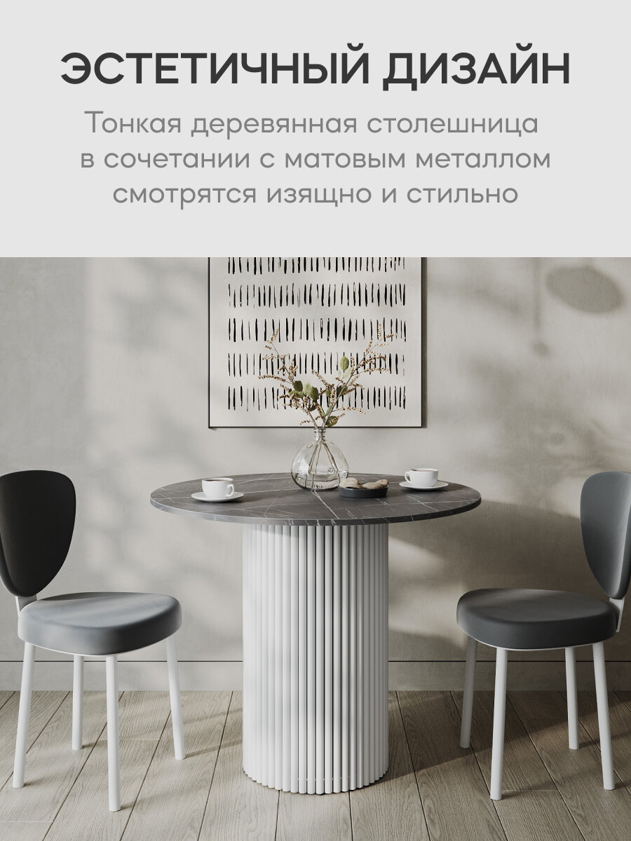 СохранитьGEN GROUP Кухонный обеденный стол TRUBIS Wood L D80 см черный мрамор с белым подстольем интересное: