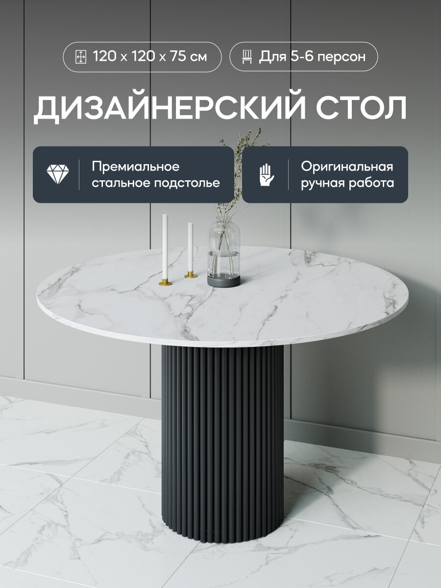 СохранитьGEN GROUP Стол обеденный кухонный TRUBIS Wood L D120 см белый мрамор с черным подстольем интересное: